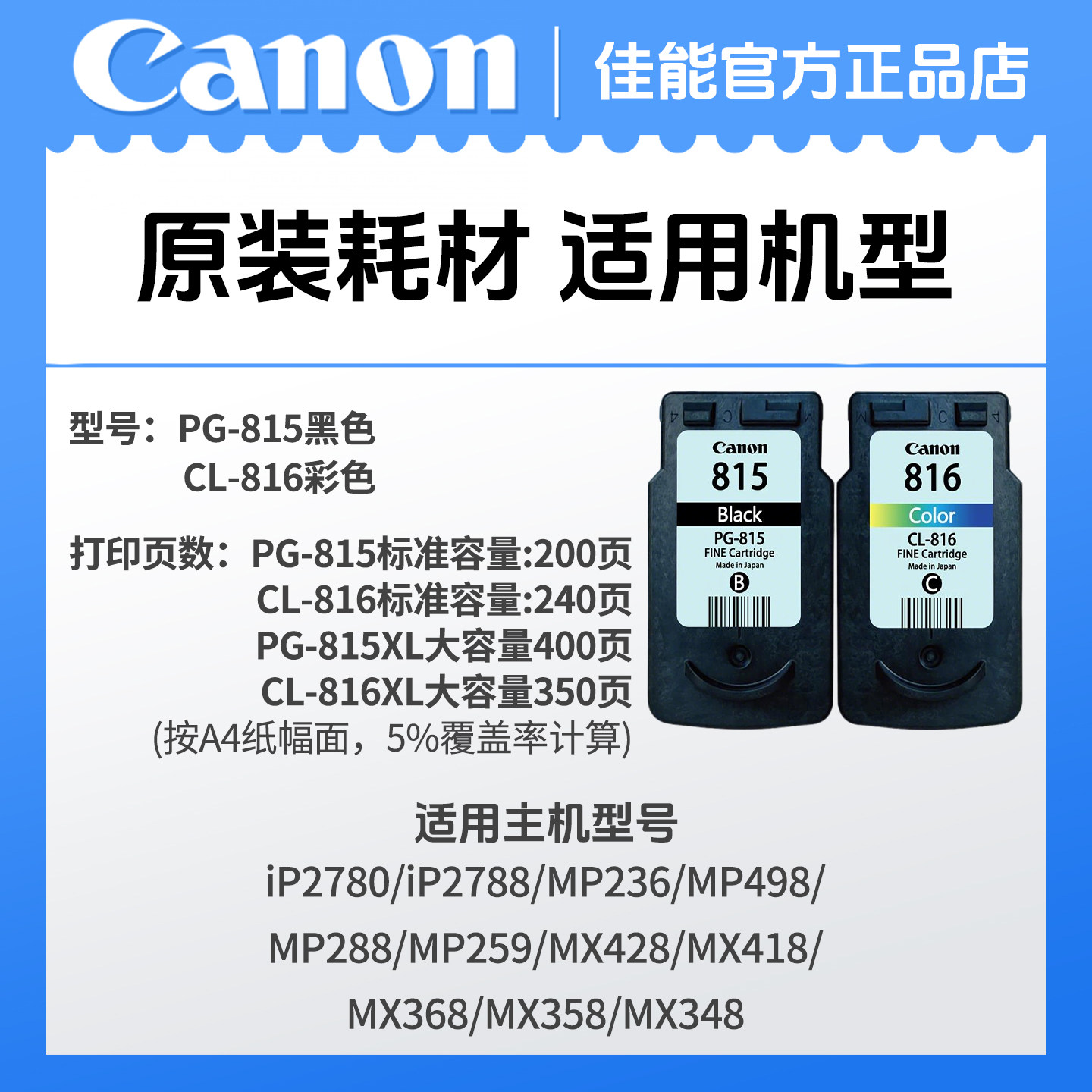 原装佳能815 816墨盒可加墨 ip2780 mp259 mp236 mp288 mx368墨盒