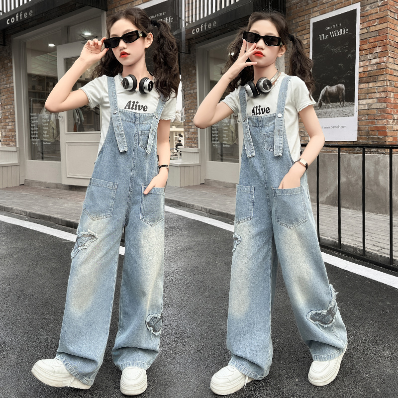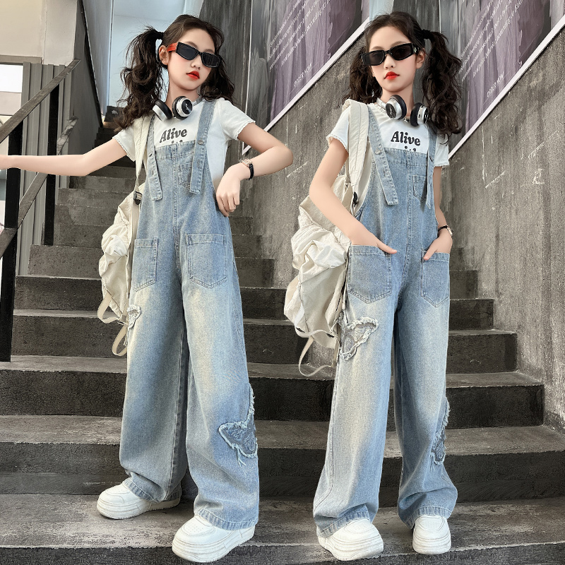 女童背带裤2025春秋新款女大童初中生休闲牛仔裤儿童青少年直筒裤