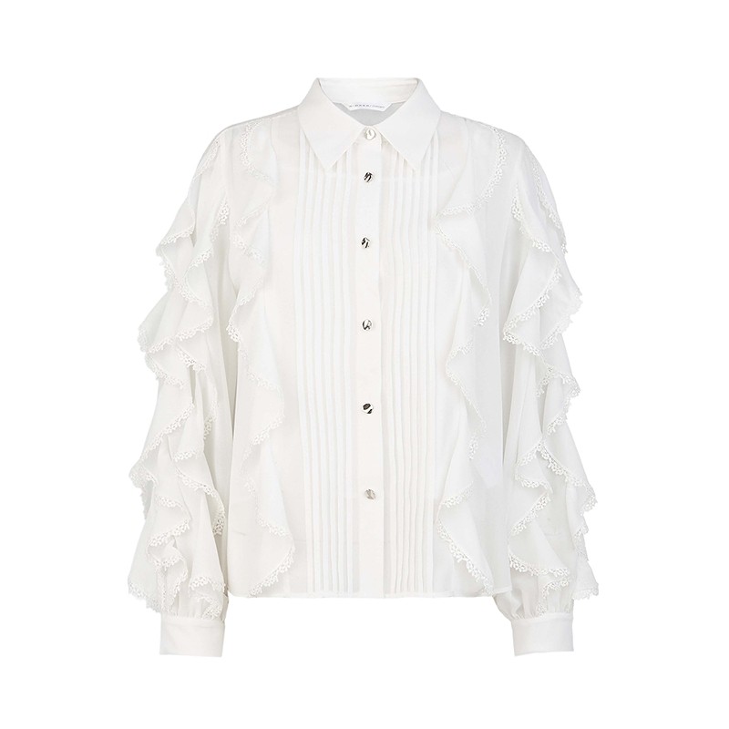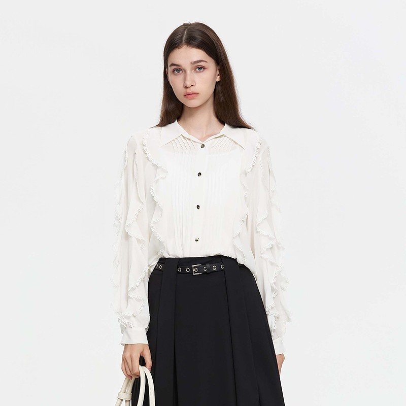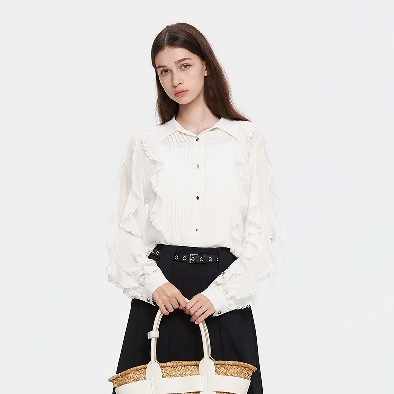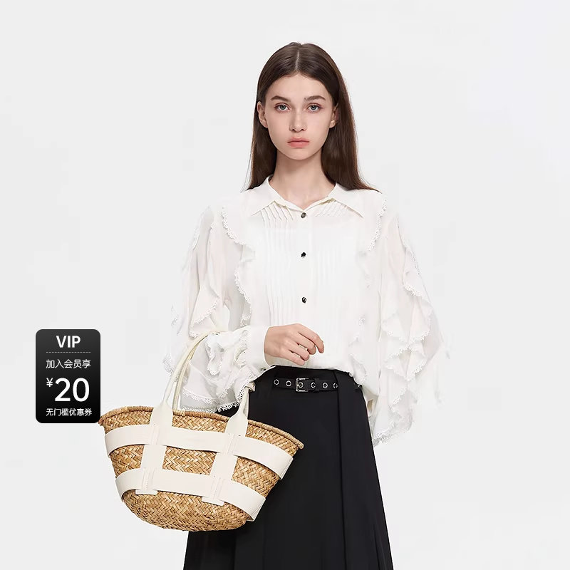 sdeer圣迪奥女装25年新品翻领荷叶边吊带两件套雪纺衬衫S253Z0506