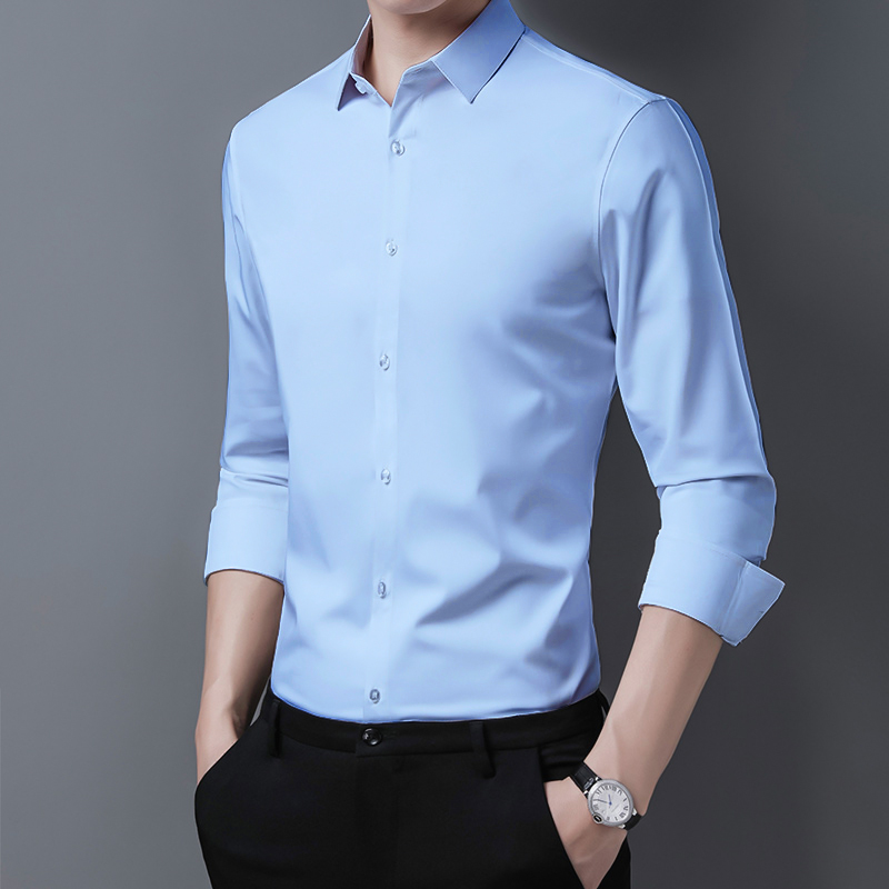 正装衬衫男长袖商务休闲工装工作服大码秋刺绣定制logo免烫白衬衣