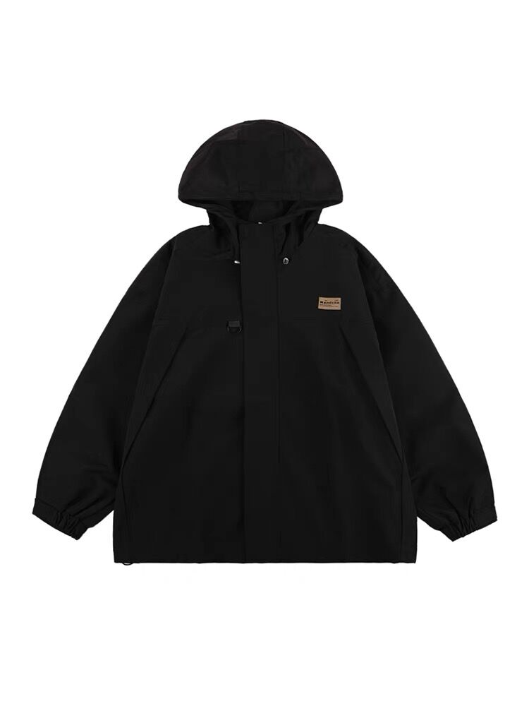 美式机能连帽冲锋衣外套男秋季加大码宽松防风衣服男生痞帅夹克衫
