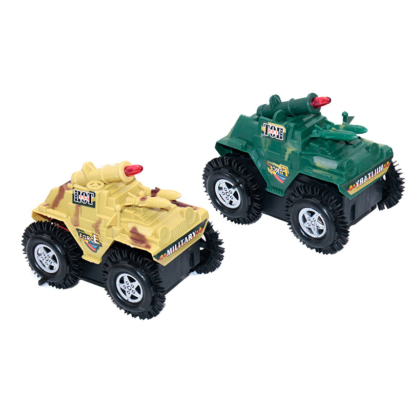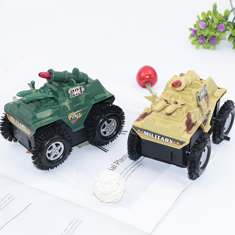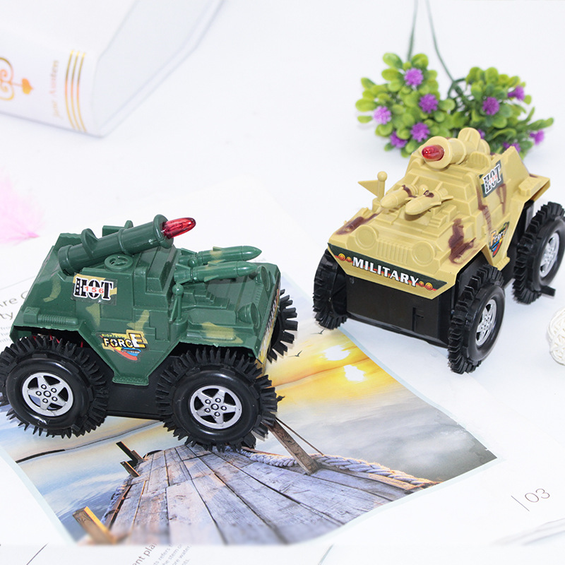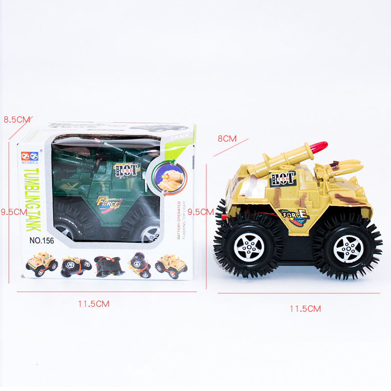 儿童电动军事翻斗车四驱车玩具坦克模型特技翻滚车旋转灯光迷彩车