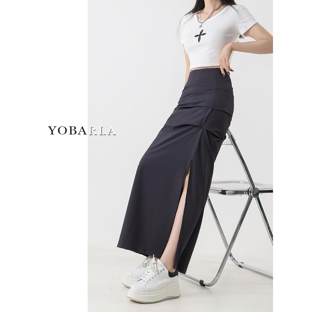 黑色开叉休闲半身裙女夏季薄款大码胖mm遮肚子显瘦中长款包臀裙子