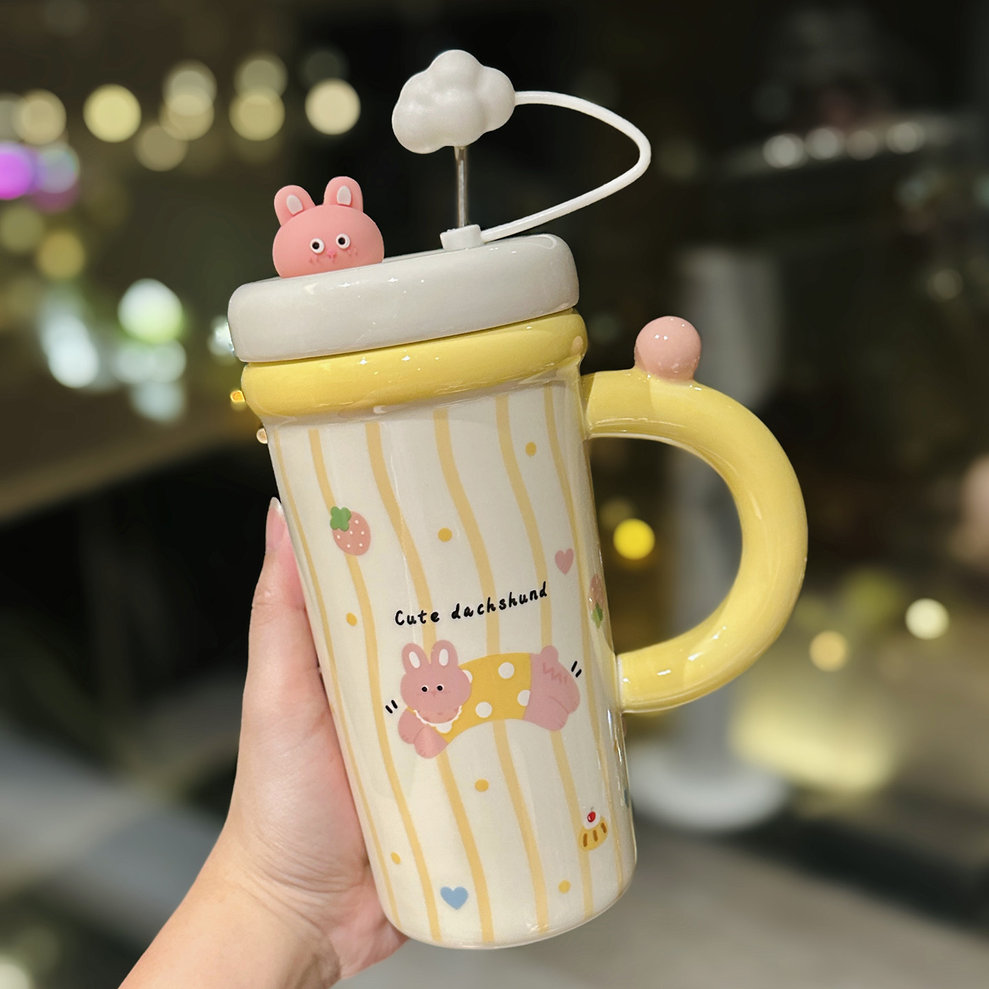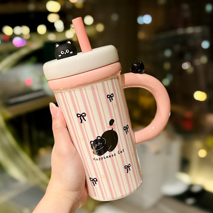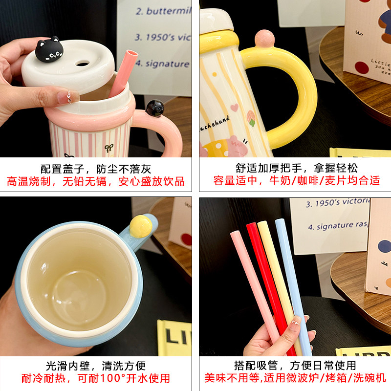 可爱小熊马克杯吸管大容量水杯高颜值陶瓷杯子女生生日礼物伴手礼