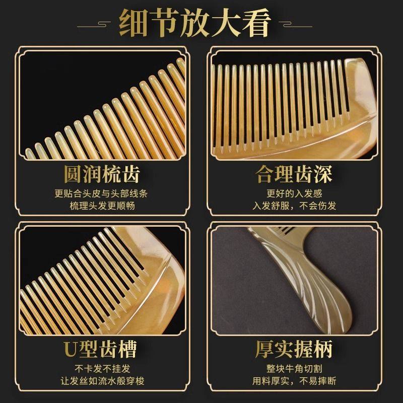 纯天然真牛角梳子女士专用长发牛角梳加厚正品男士家用头部经络梳
