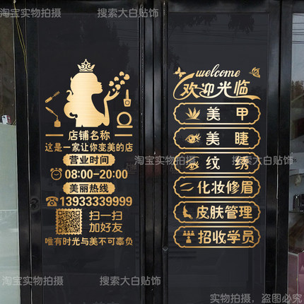 美容院美甲美睫店玻璃门贴纸纹绣护肤化妆品广告字橱窗创意装饰贴