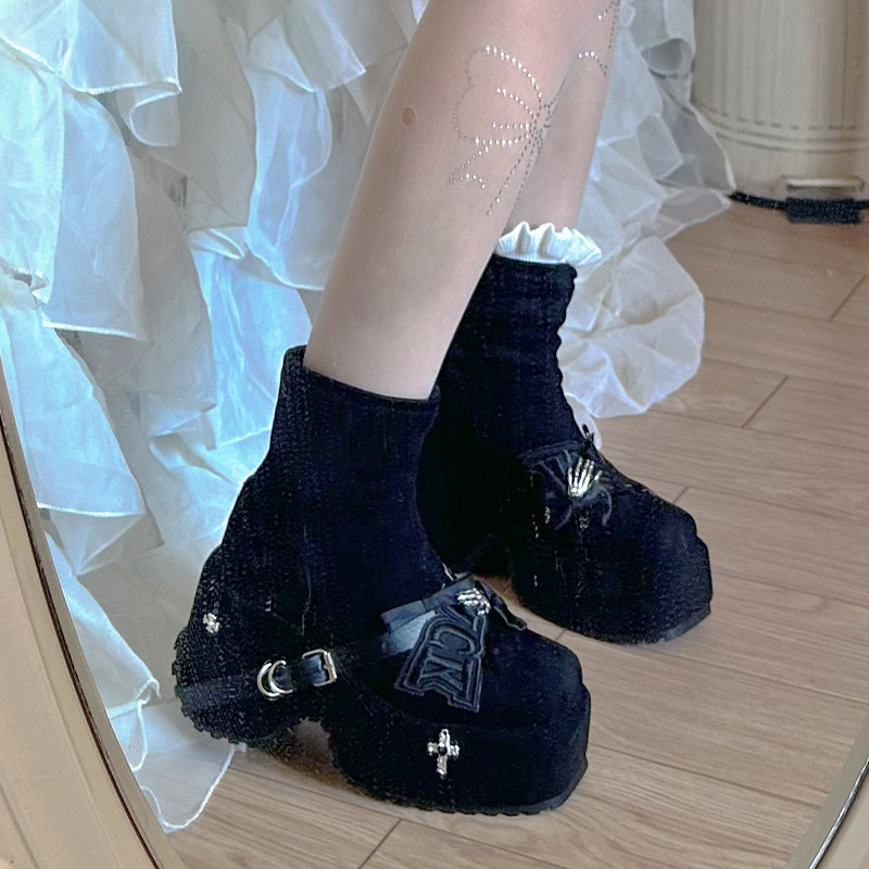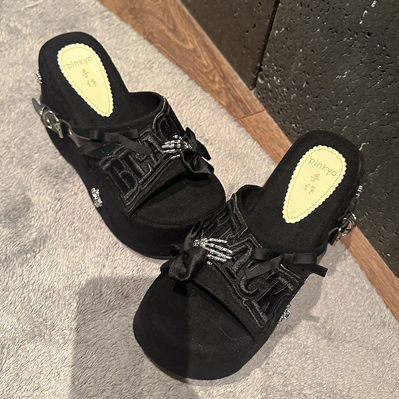 pinkyo原创y2k亚文化朋克凉鞋2025夏季铆钉十字架坡跟松糕厚底鞋