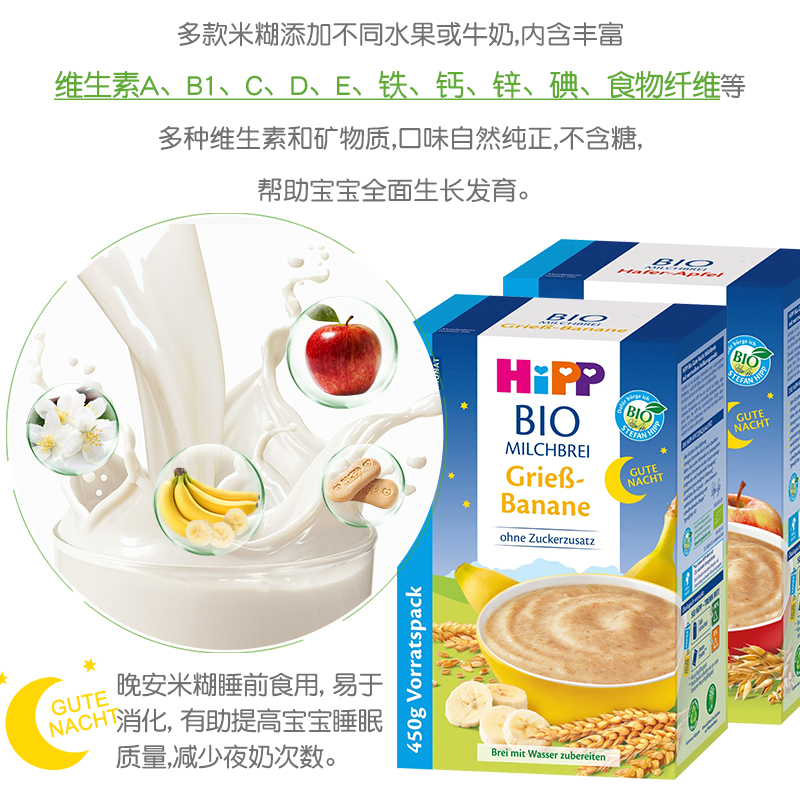 德国Hipp喜宝婴儿米粉米糊进口有机高铁水果谷物宝宝营养辅食麦片