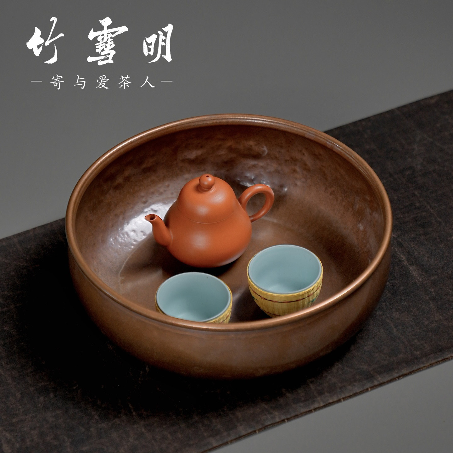 竹雪明|手工锤纹大紫铜大水洗加厚铜茶洗茶具铜盆茶渣缸茶道笔洗