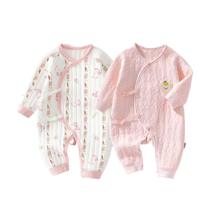 2件 新生婴儿衣纯棉冬季保暖衣夹棉加厚哈衣爬服初生宝宝连体衣服