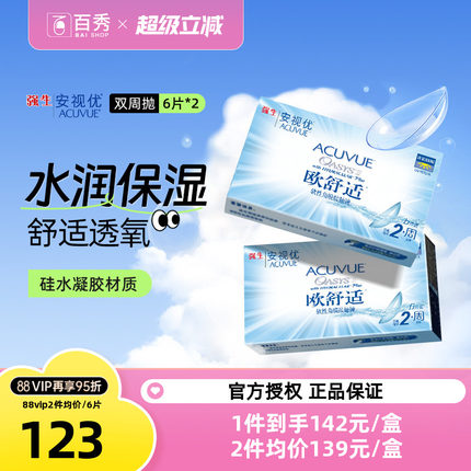 强生欧舒适双周抛安视优隐形眼镜半月抛6片*2硅水凝胶官方旗舰店