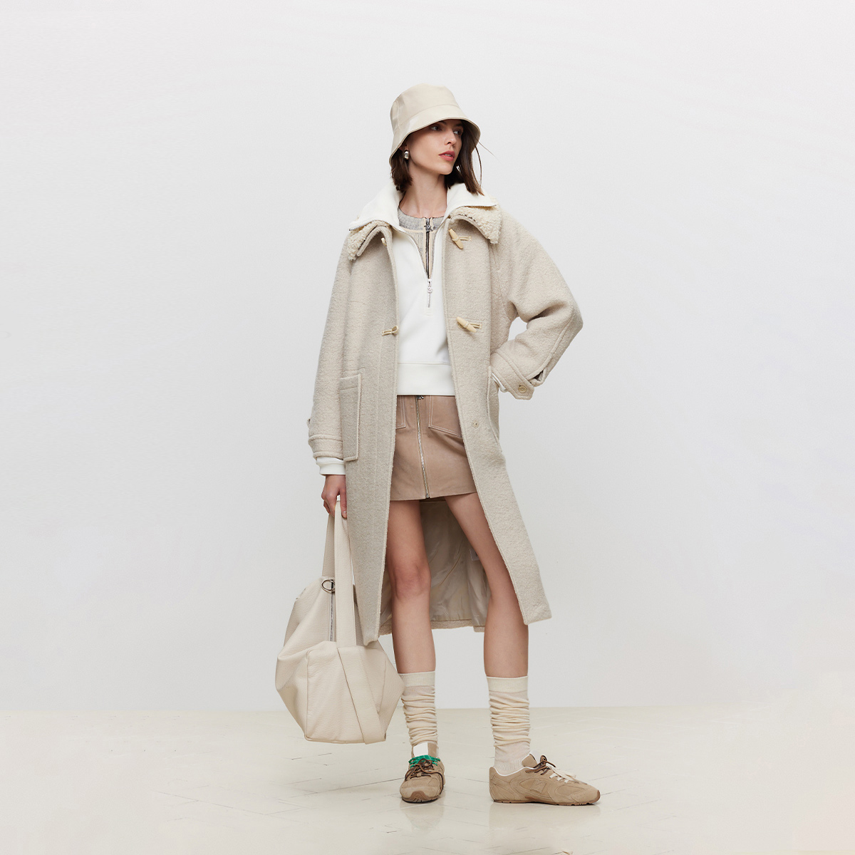 ONLY冬季含绵羊毛宽松翻领中长款毛呢大衣女|12436U011