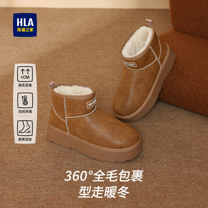 HLA/海澜之家雪地靴女2026冬季新款加绒保暖厚底防滑东北毛毛棉鞋