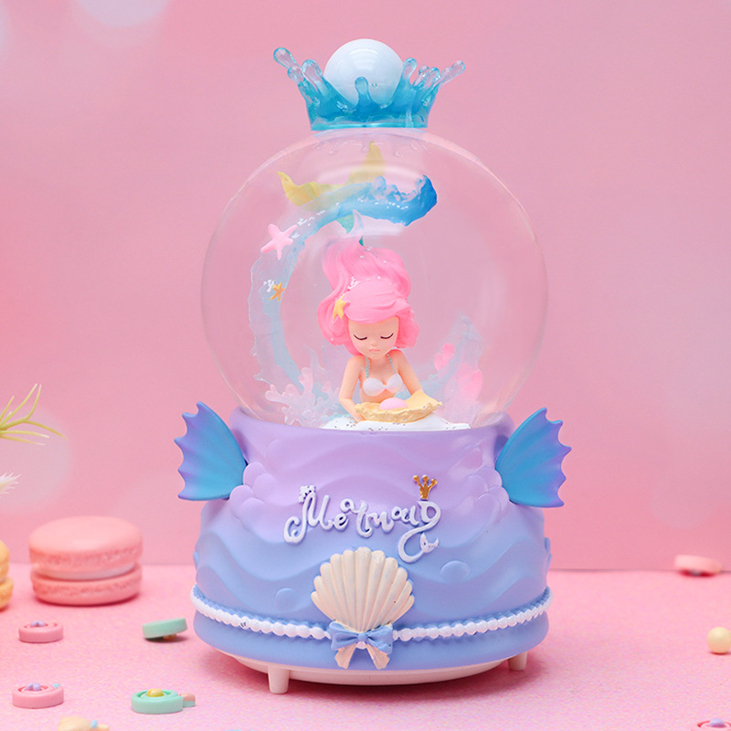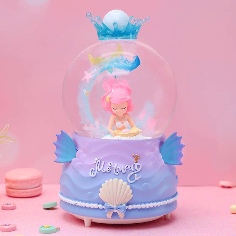 梦幻美人鱼发光飘雪花旋转水晶球音乐盒送朋友儿童女孩生日礼物