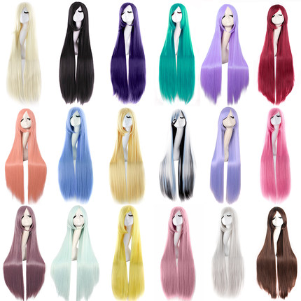 万用cos假发女长发动漫纯黑紫红彩色白色100超长直发假头发全头套
