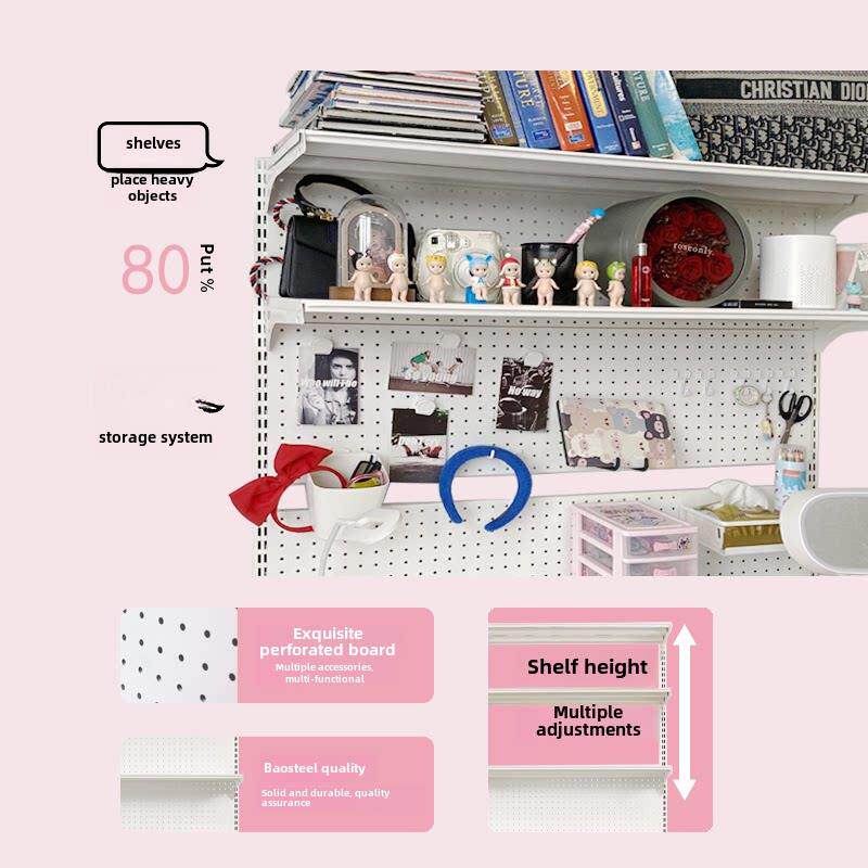 穿孔板书架学生多功能1.6米加固女童书房儿童桌小红微博同体书
