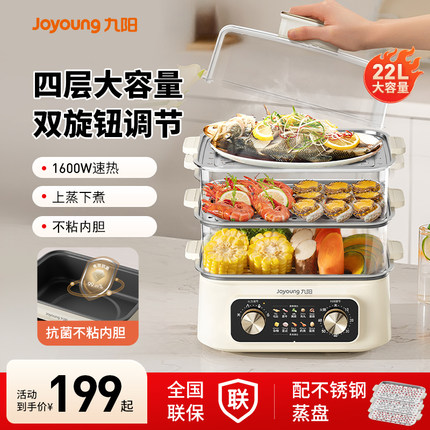 九阳电蒸锅多功能家用蒸煮炖一体锅三层不锈钢蒸笼烹饪机厨房电器
