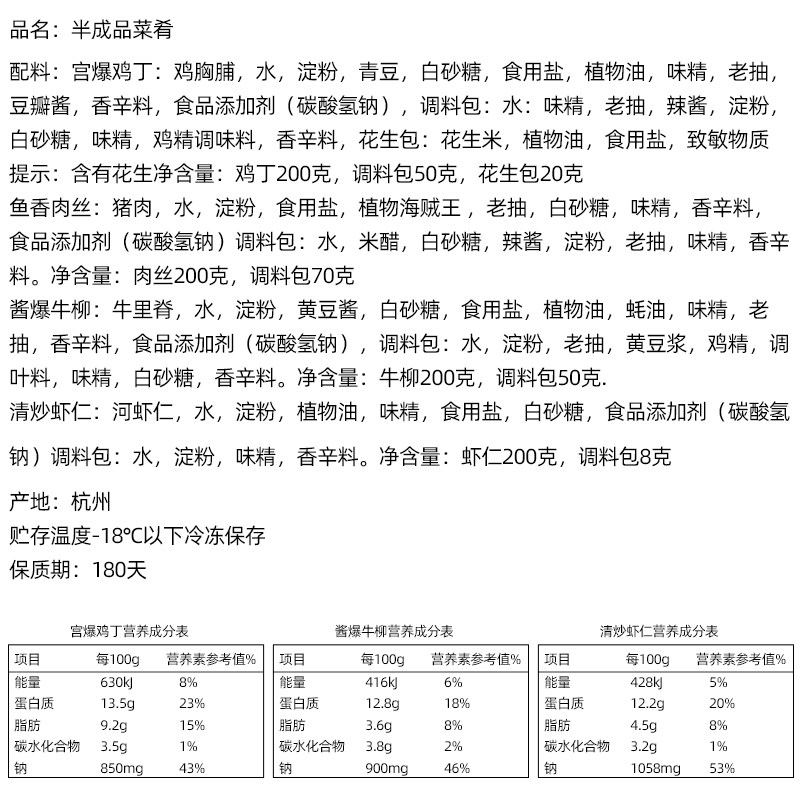 楼外楼半成品清炒虾仁酱爆牛柳鱼香肉丝宫爆鸡丁冷冻菜肴杭州特产