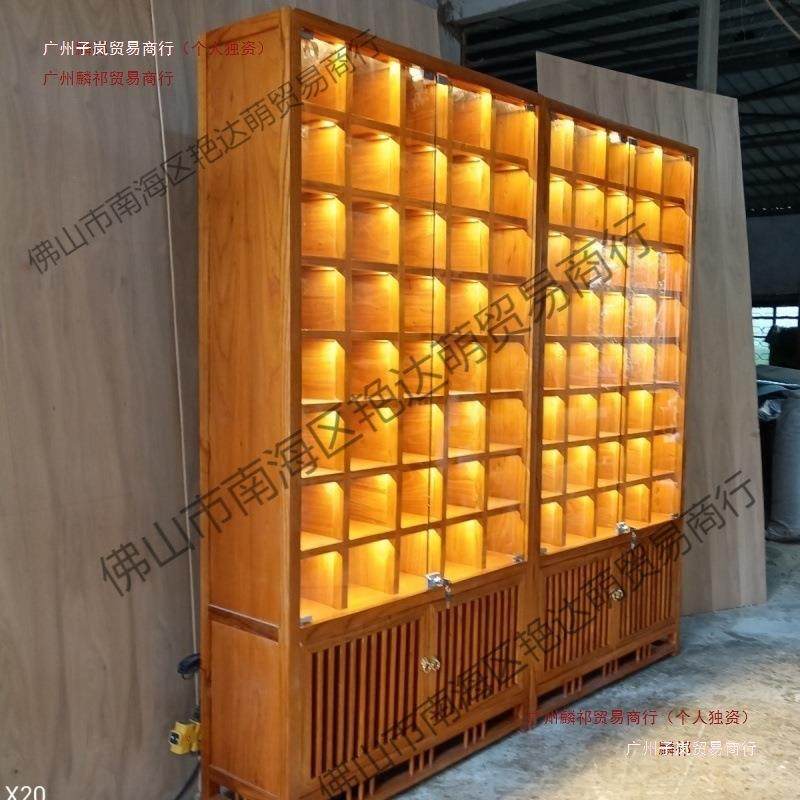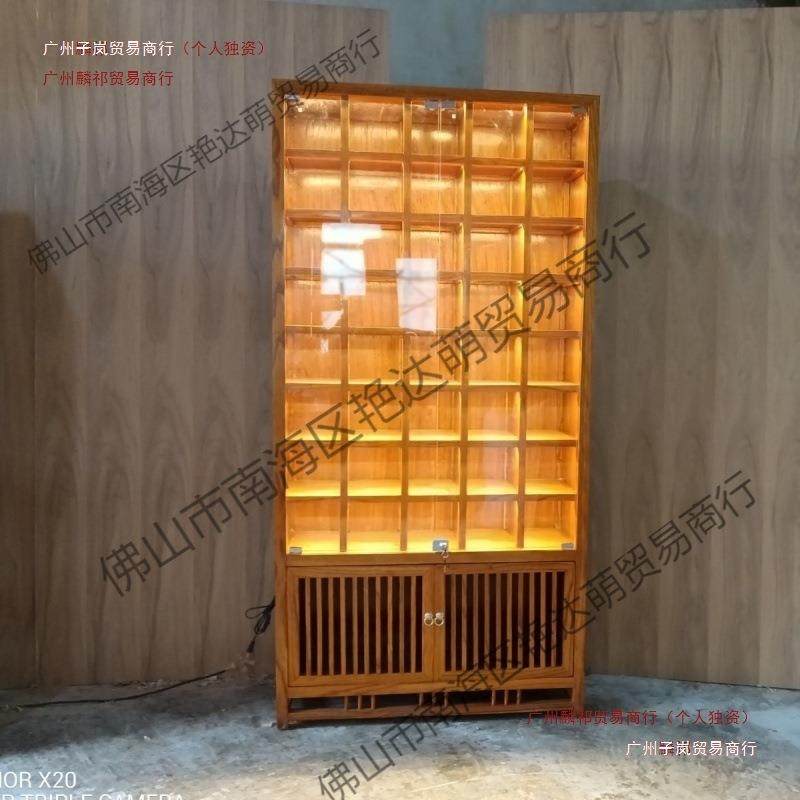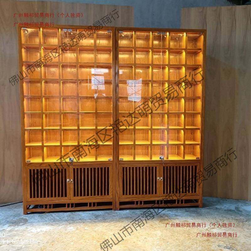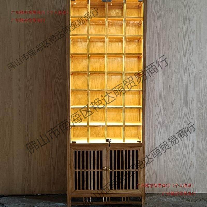 实木格子架紫砂壶玻璃茶杯茶壶多宝阁榆木博古架带灯带灯展示柜