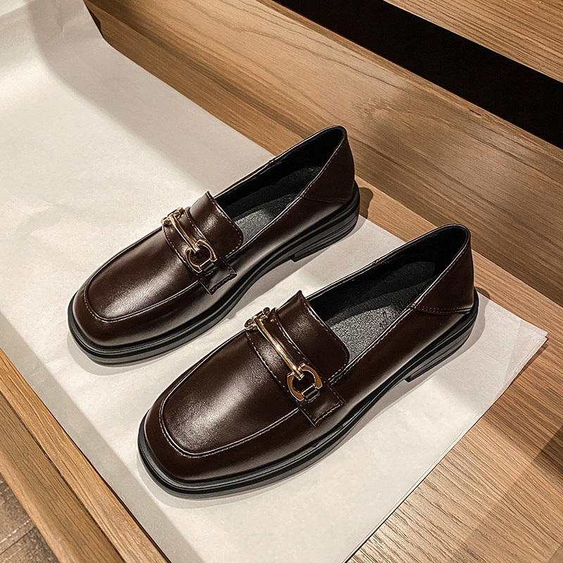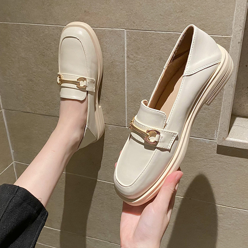 春季英伦小皮鞋女2025新款厚底百搭黑色乐福鞋平底单鞋大码41一43