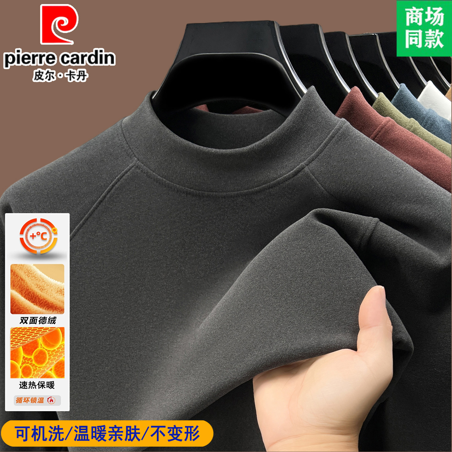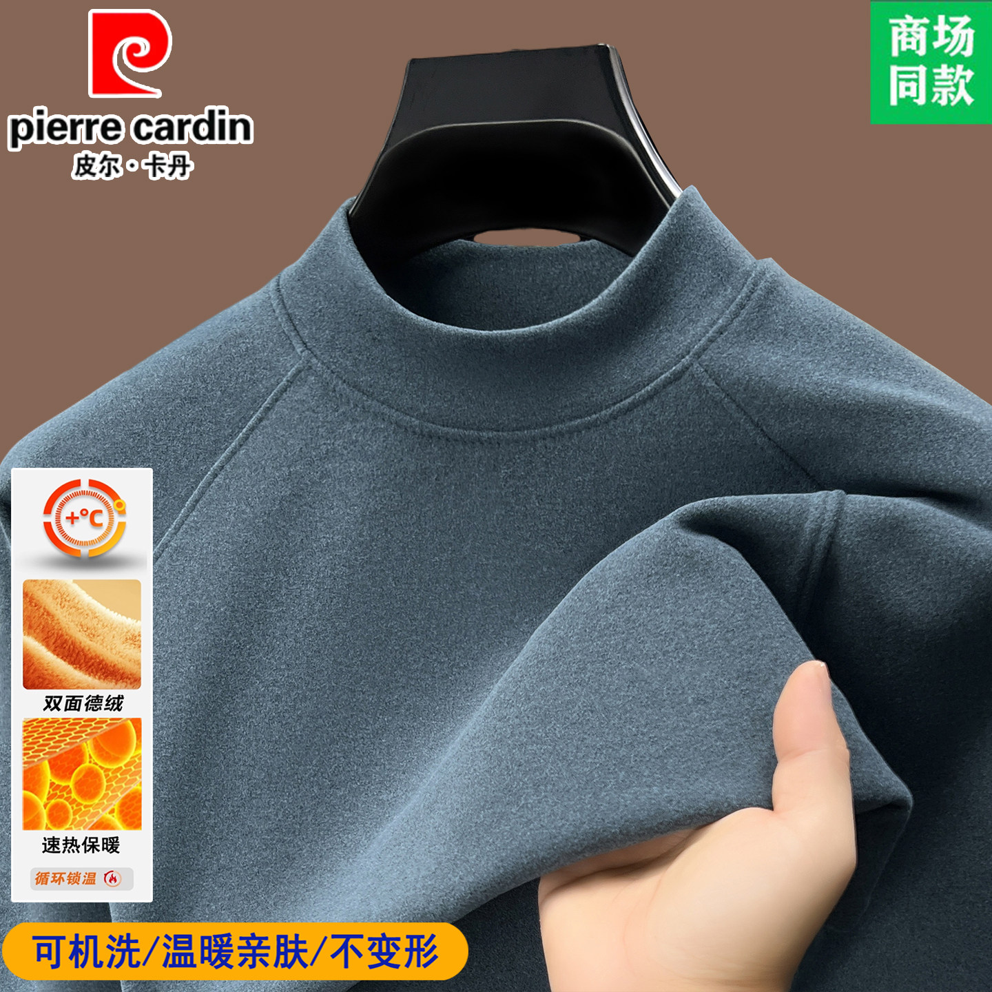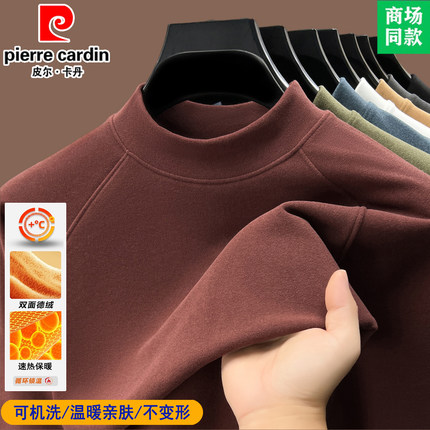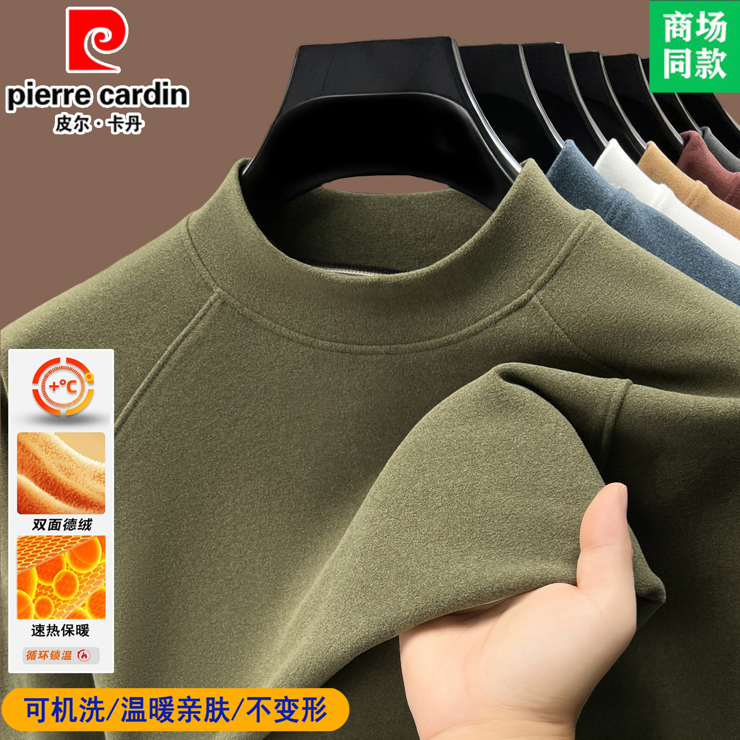 皮尔卡丹高档双面德绒秋冬打底衫男士加厚保暖卫衣发热长袖t恤衫