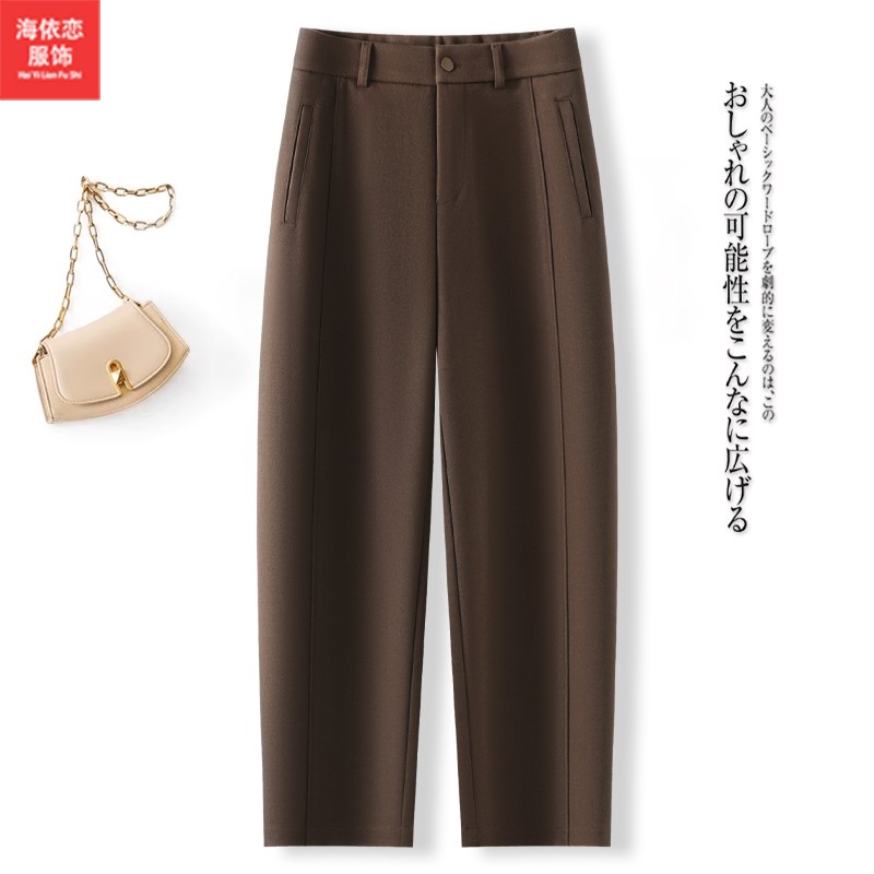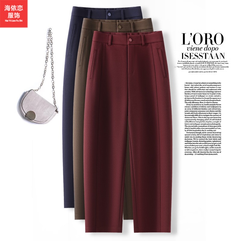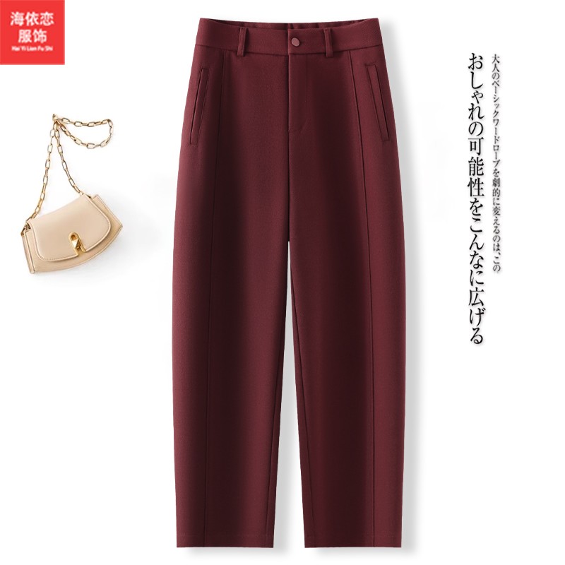 安可拉红九分羊毛呢哈伦裤女2025秋冬新款高腰显瘦小个子镰刀裤子