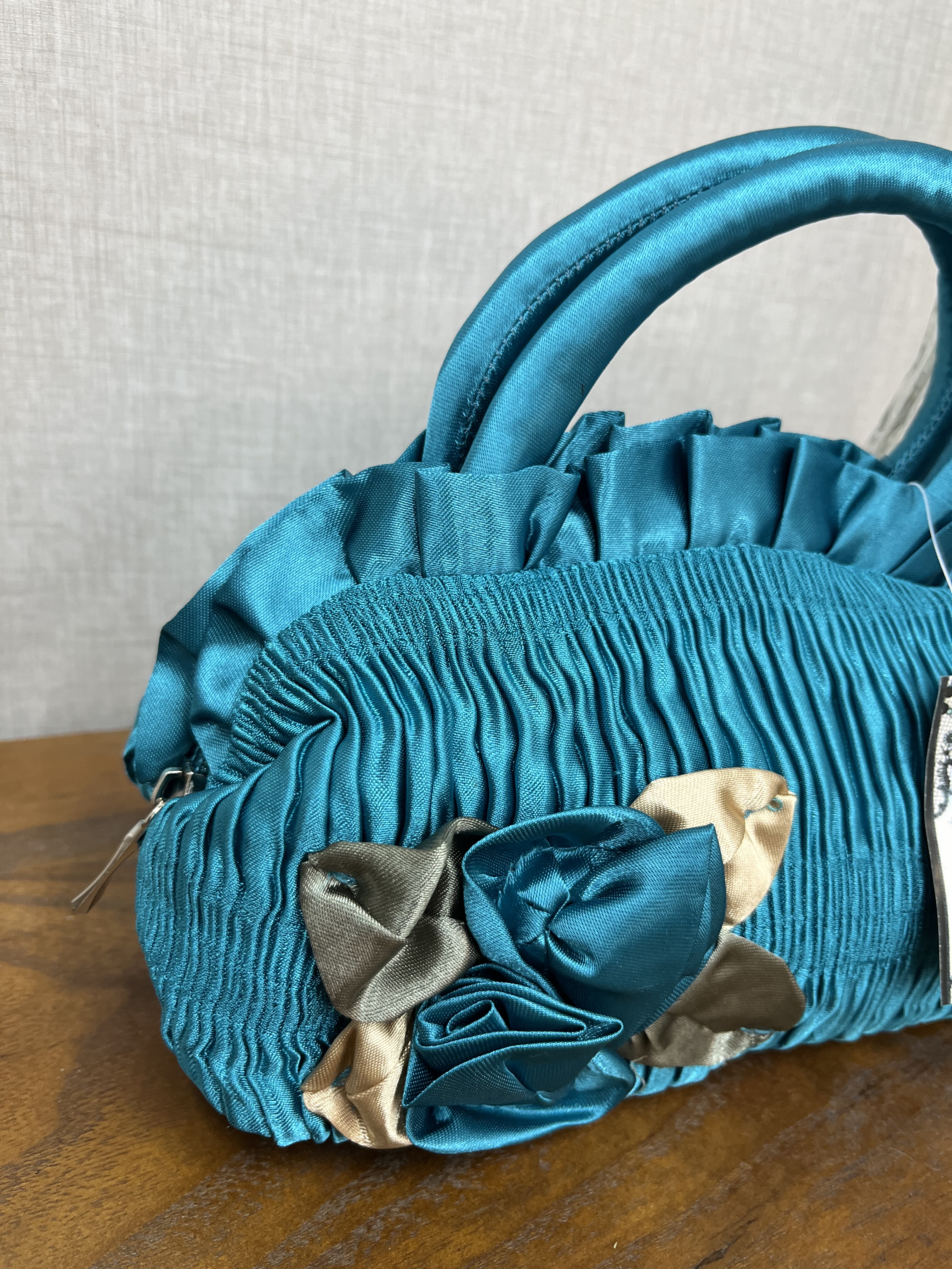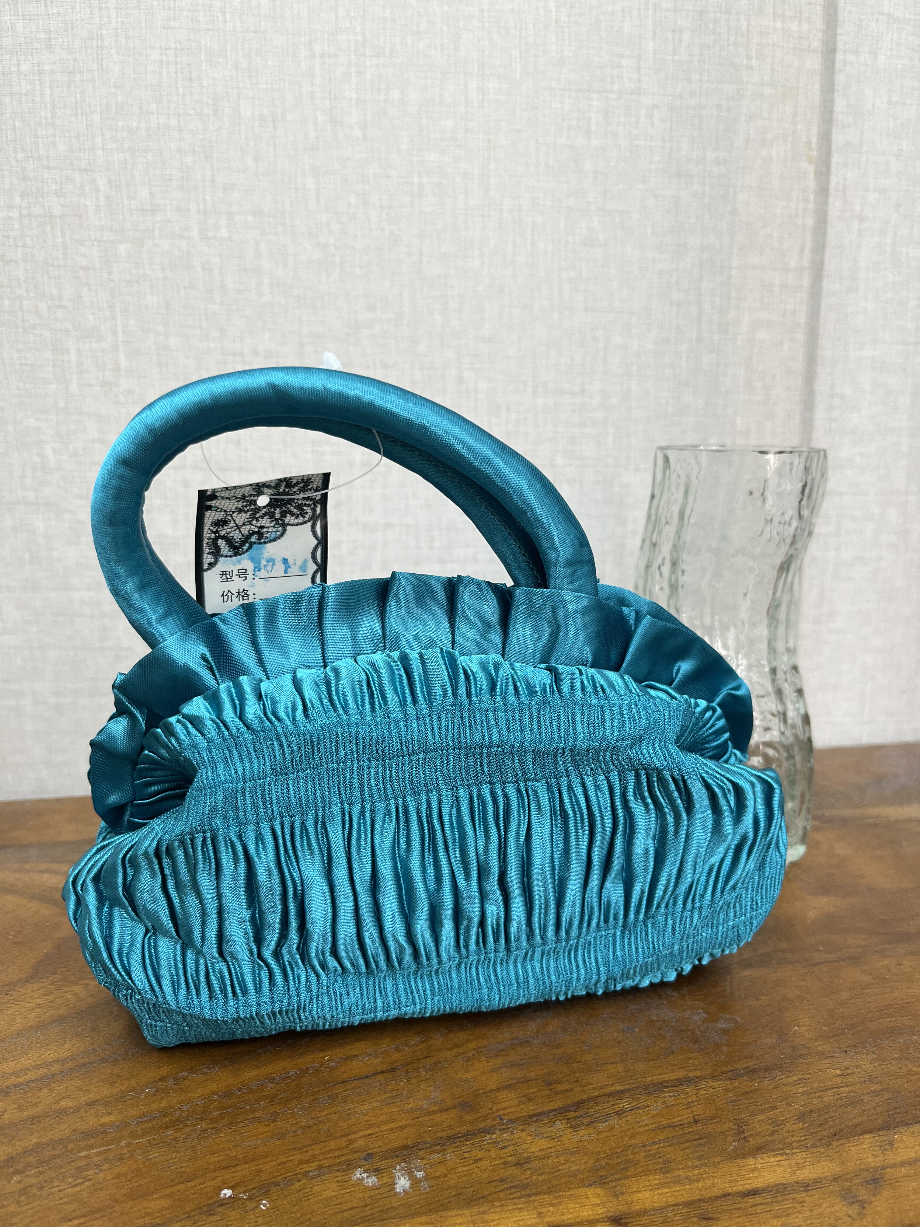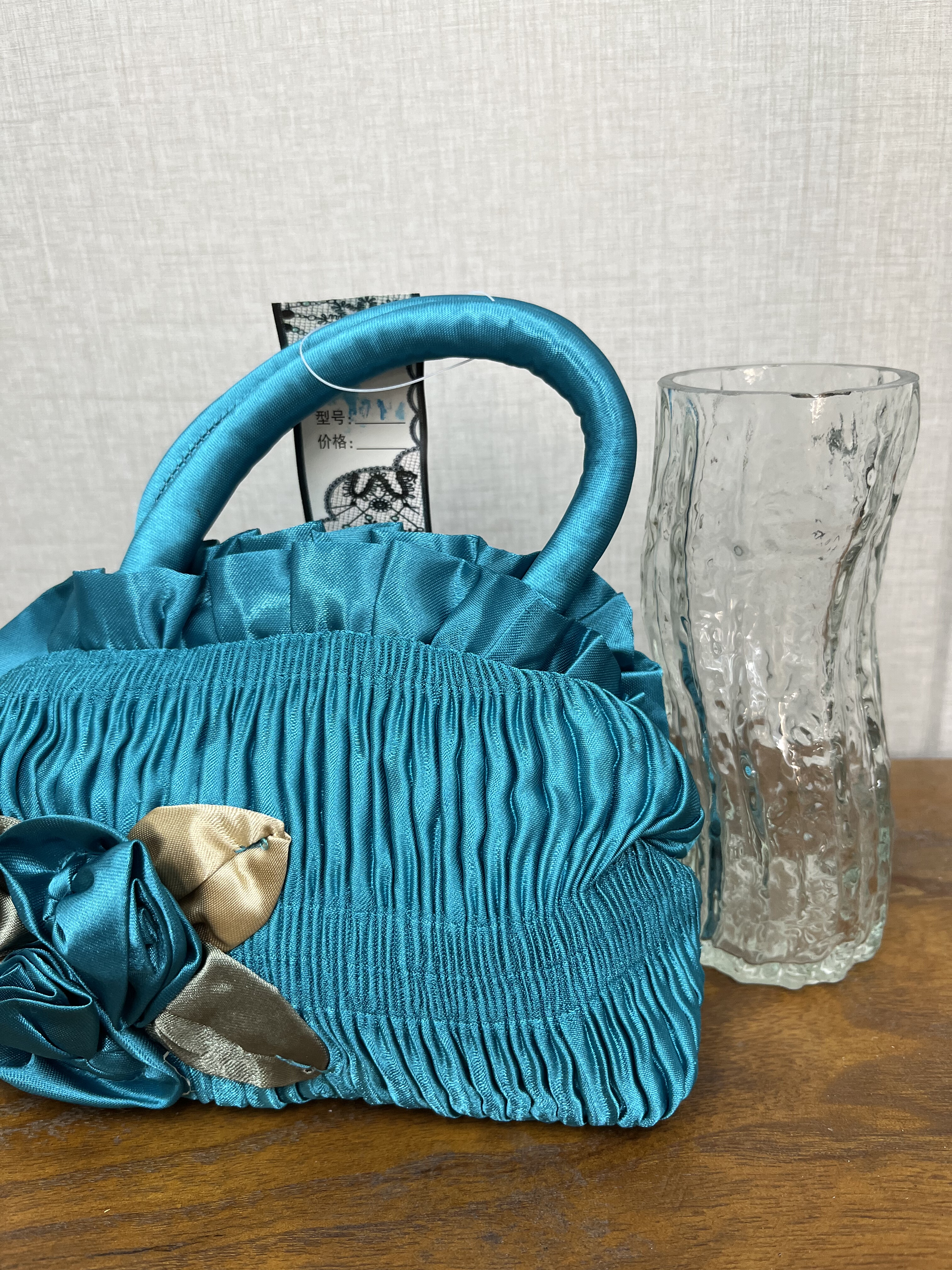 高品质孔雀蓝立体花手提包春夏复古高级零钱包迷你包款