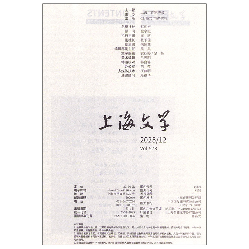 上海文学2025年12/11/10/9/8/7/6/5/4月小说月报作家微型评论中长篇文学选刊期刊杂志订阅学术期刊书籍