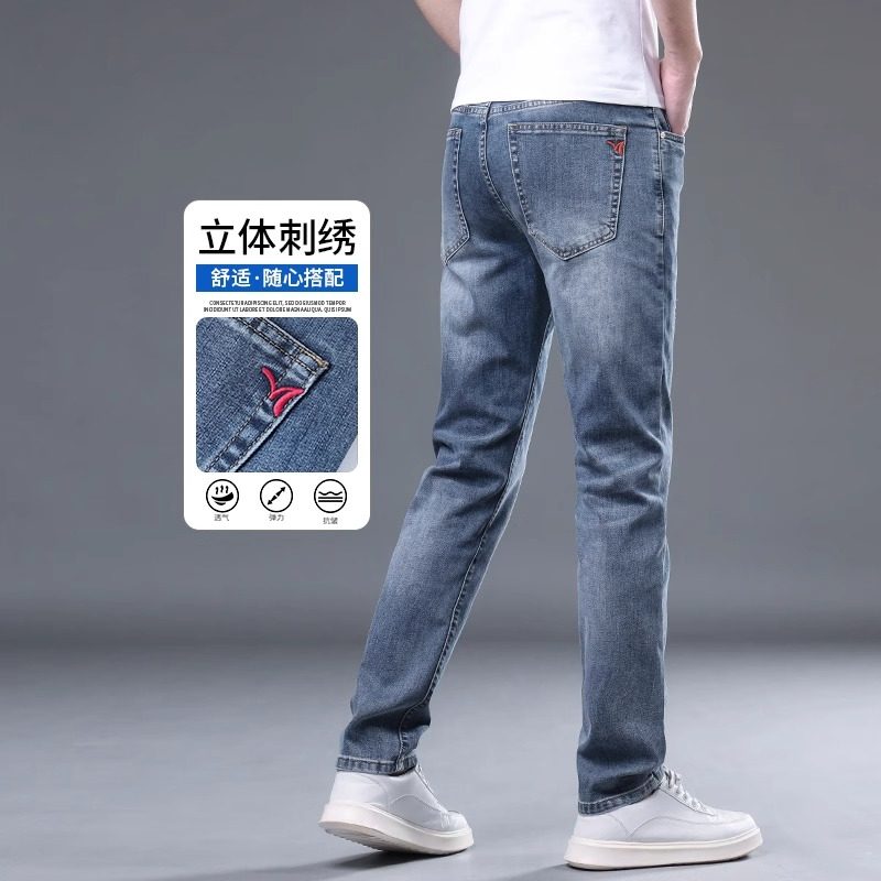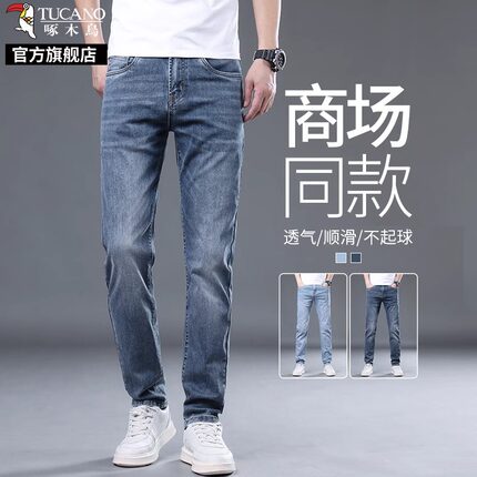 啄木鸟直筒牛仔裤男款春秋季宽松弹力2025夏季薄款冰丝休闲长裤子
