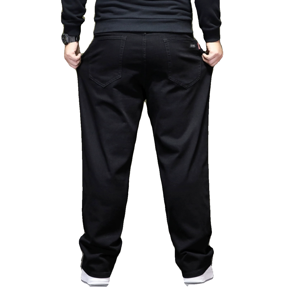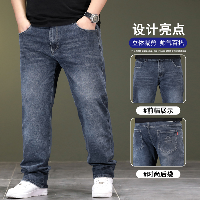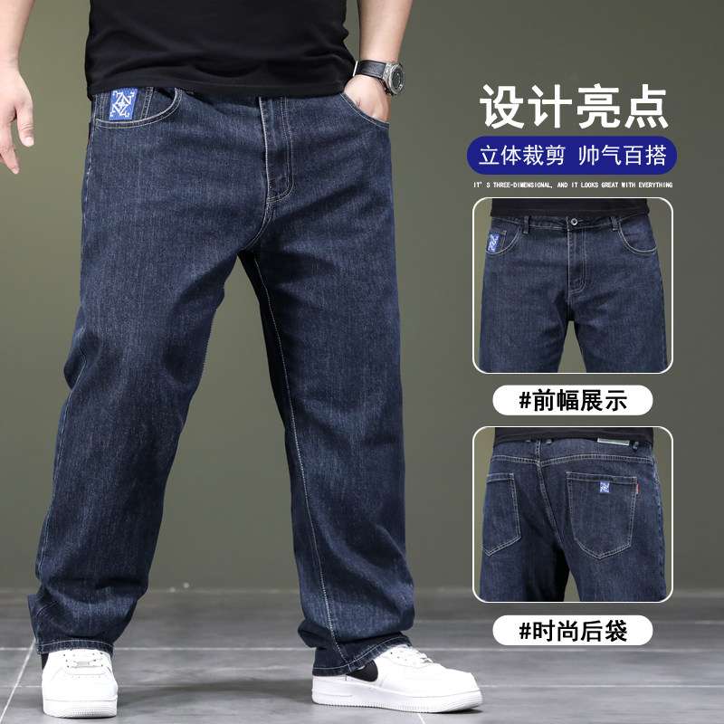 春夏新款大码黑色弹力宽松牛仔裤男士高腰胖子肥直筒裤加肥加大码
