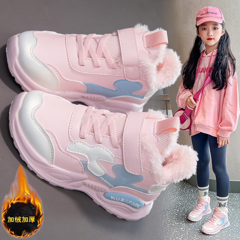 巴布豆男童冬季运动鞋加绒中大童软底儿童保暖2025年新款女孩棉鞋
