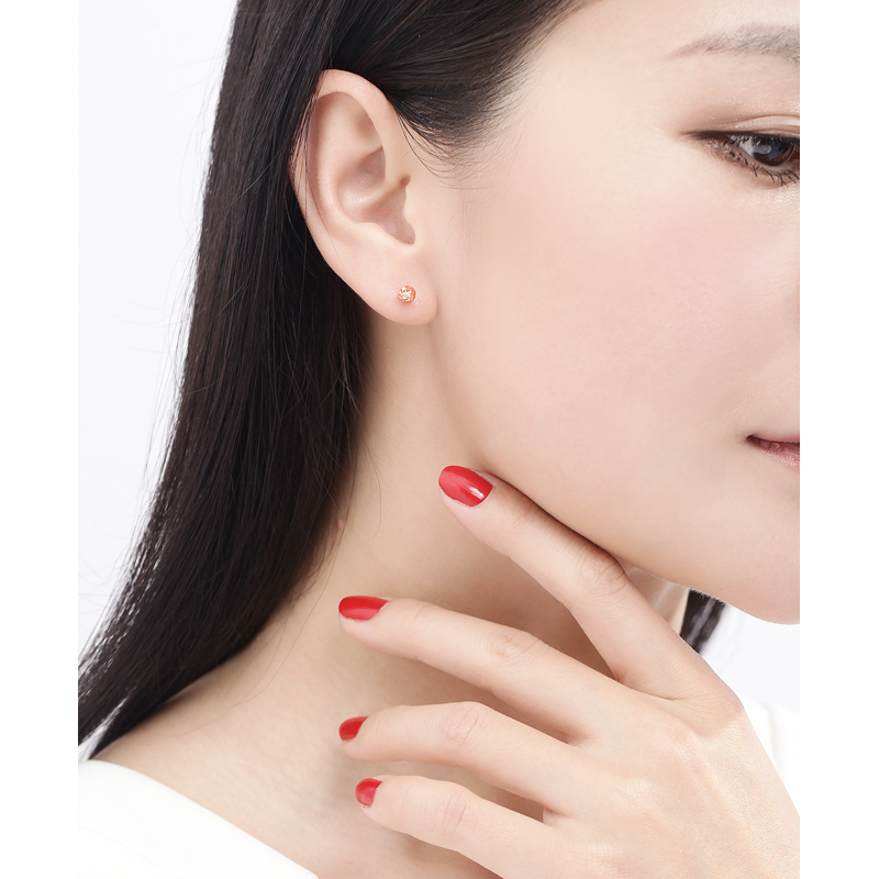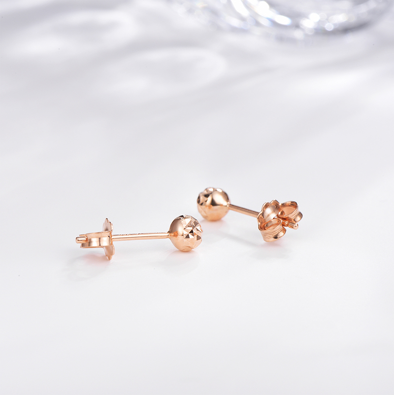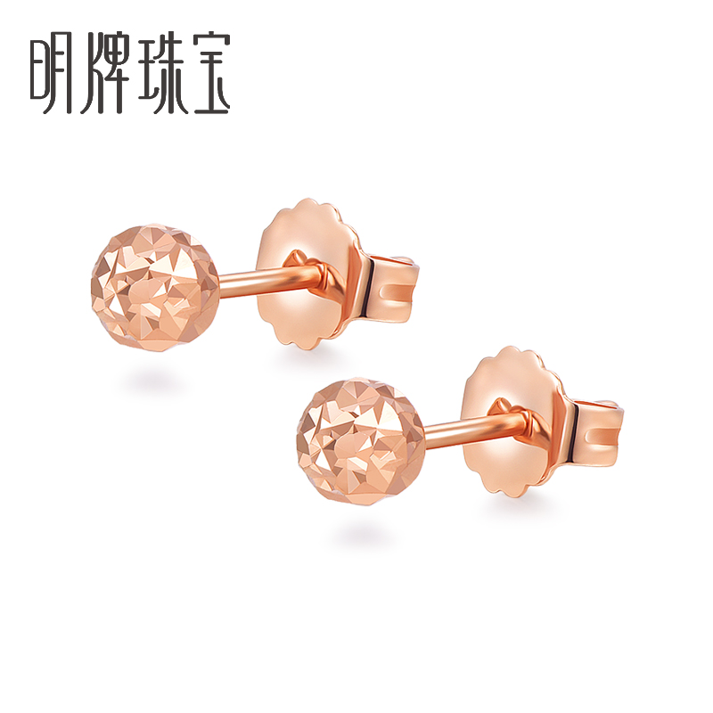 明牌珠宝18K金耳钉 彩金玫瑰金圆珠劈花耳钉简约耳饰CSH0066定价