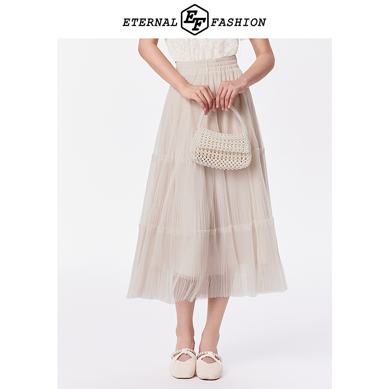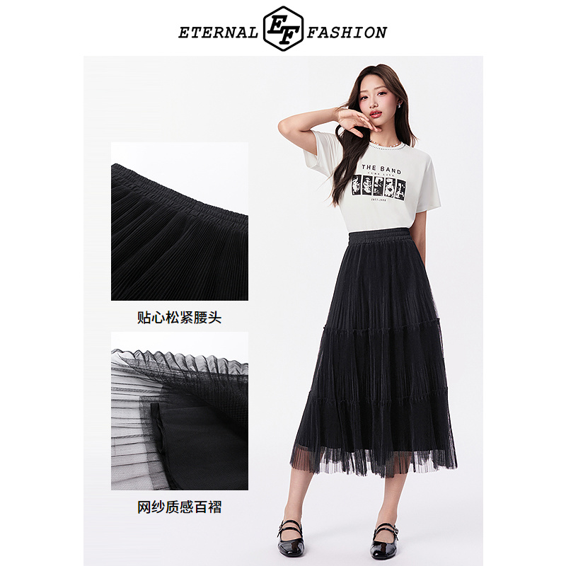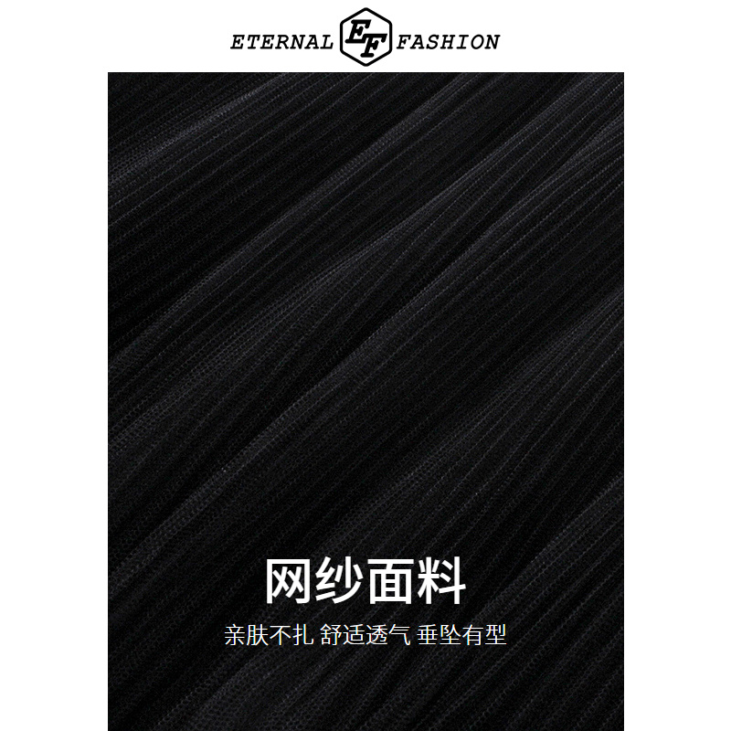 EF黑色高腰网纱半身裙2025春秋新款小个子气质蛋糕裙A字中长裙子