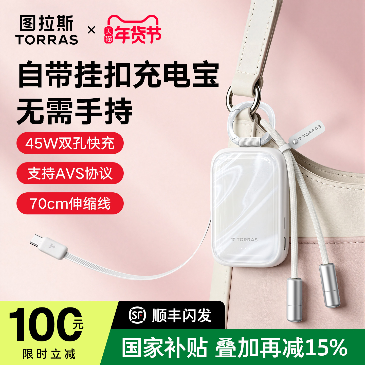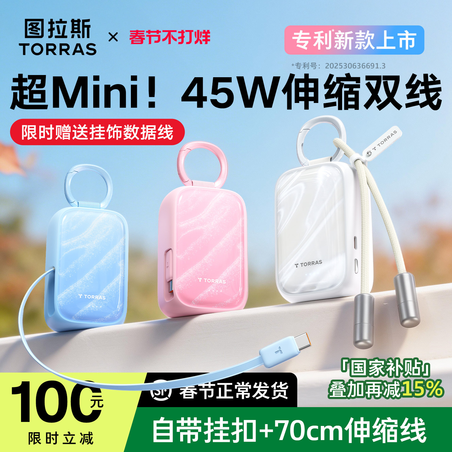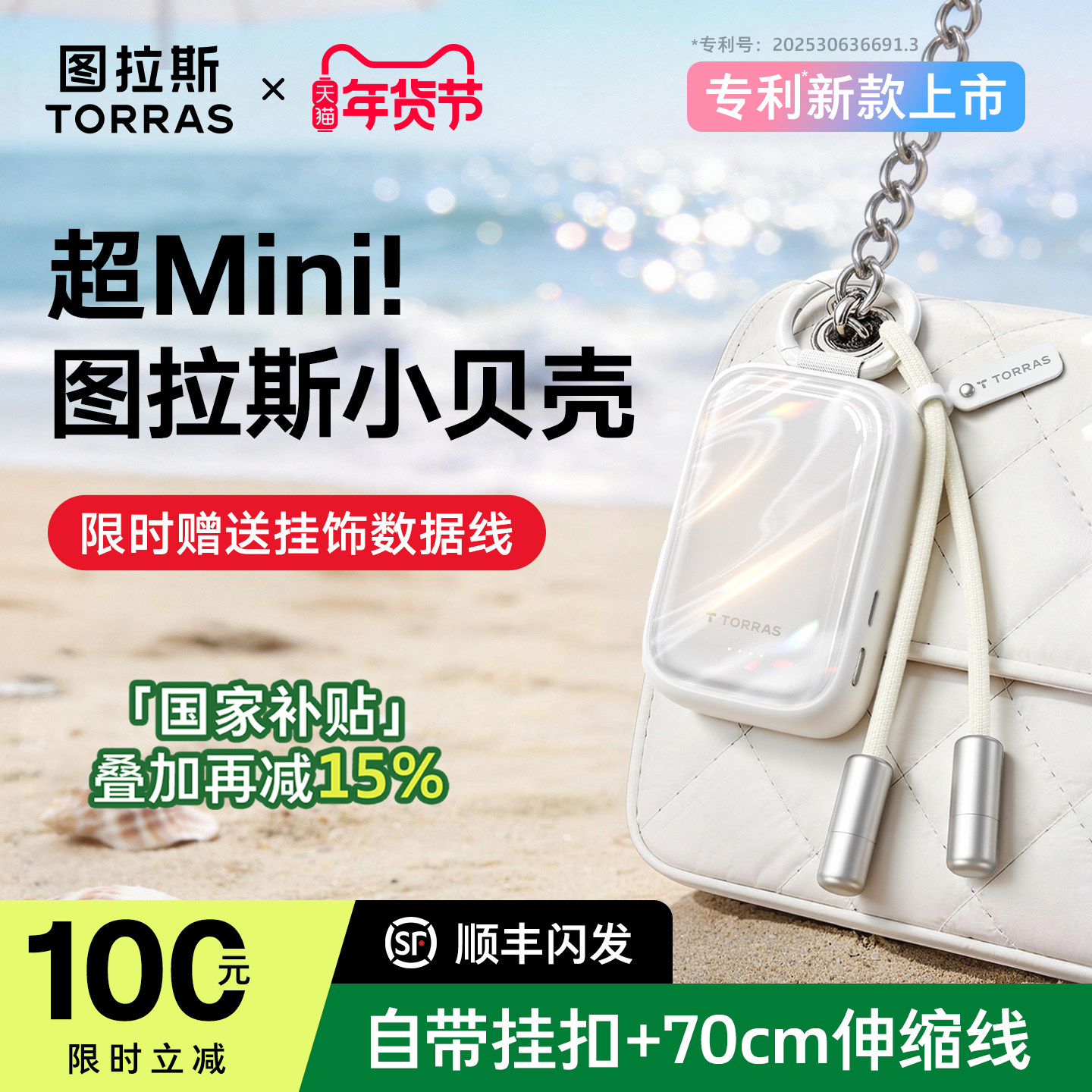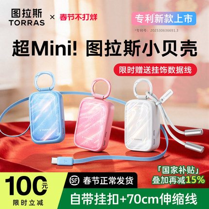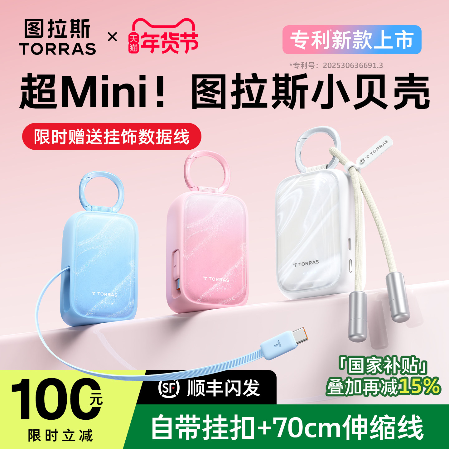 图拉斯小贝壳充电宝3C认证可上飞机小巧便携移动电源2026新款挂包双线45W快充自带线大容量适用苹果17华为AVS