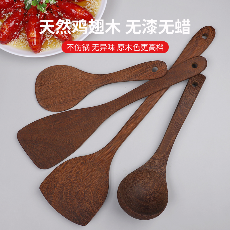 鸡翅木锅铲家用不粘锅专用无漆长柄实木锅铲套装耐高温炒菜铲木铲