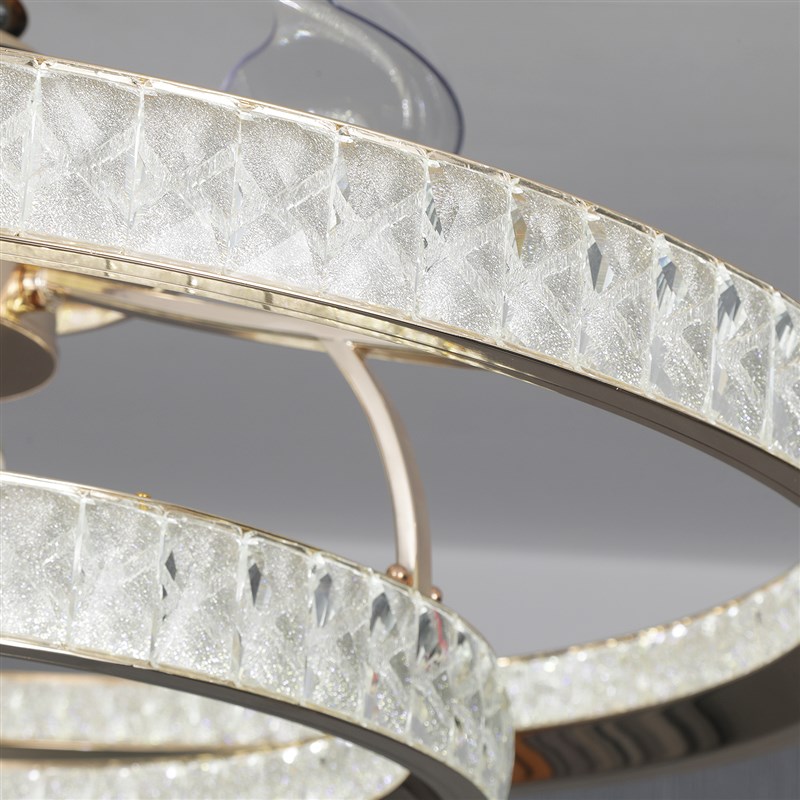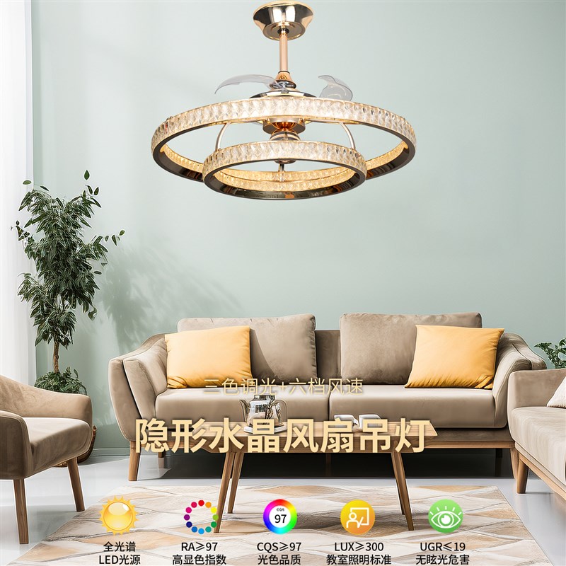 新款水晶隐形风扇吊灯三色变光全铜电机智V能语音吊扇灯