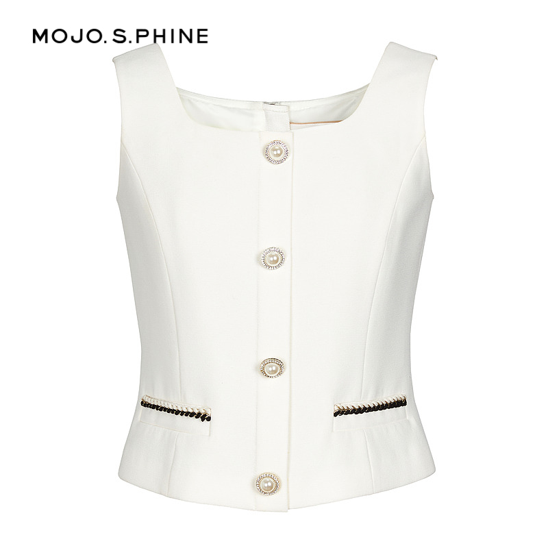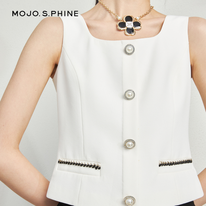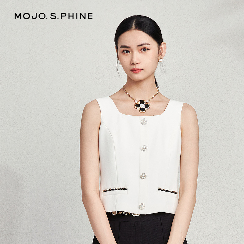 MOJO莫佐优雅气质方形领马甲2024夏季新款优雅干练简约百搭上衣女