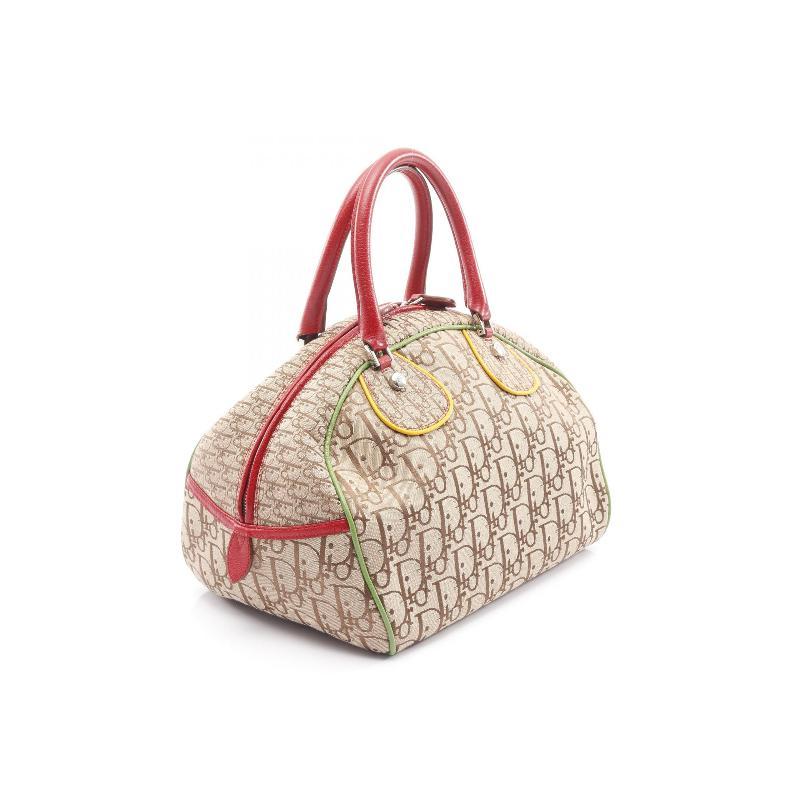 中古Dior迪奥女包B级9新Boston bag波士顿包帆布手提包浅褐色复古
