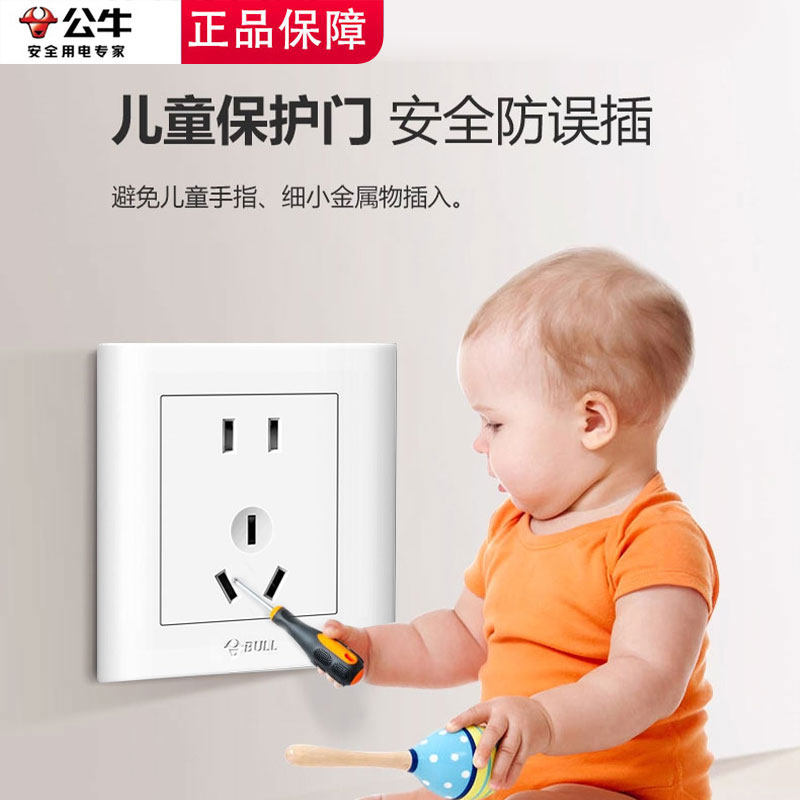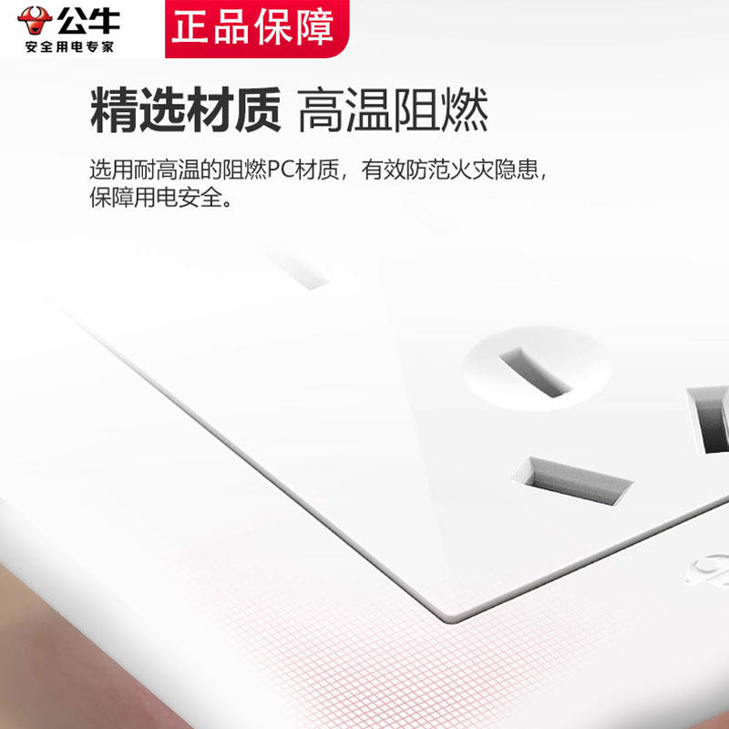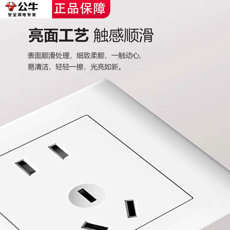 公牛正品开关插座面板多孔家用暗装86型五孔usb带开关插座16a空调
