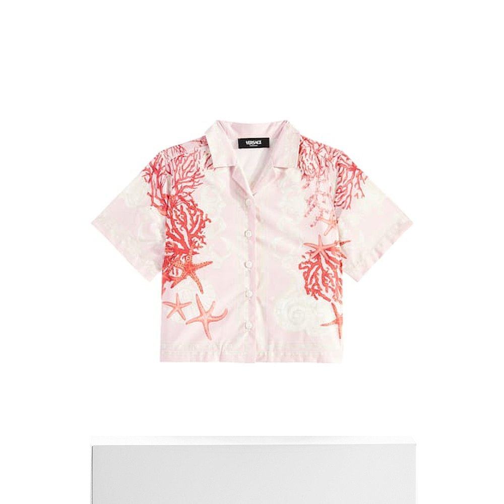 香港直邮Versace Young 女童 Barocco 海滩棉府绸衬衫童装 003711