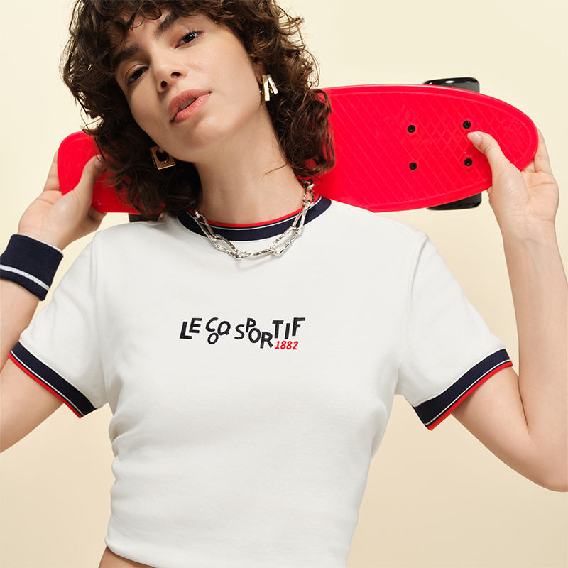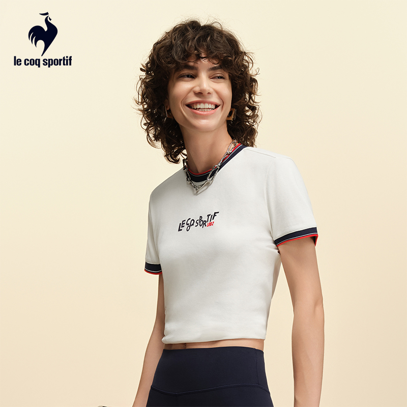 乐卡克法国公鸡2025年夏季新品女款运动休闲短袖纯棉印花圆领T恤