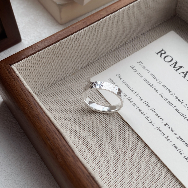 S999纯银碎冰冰戒指女小众设计轻奢高级感指环简约足银食指戒刻字