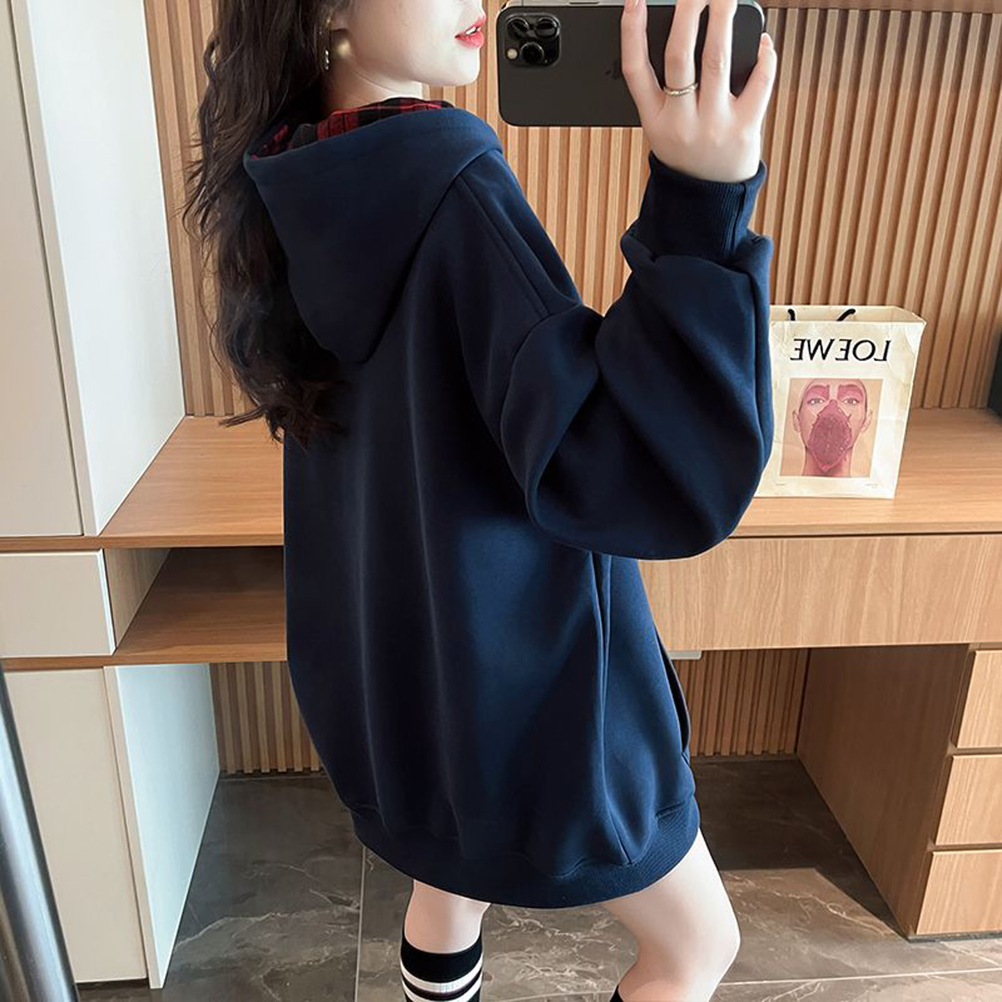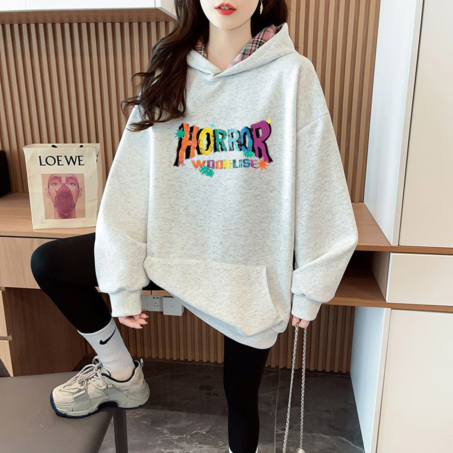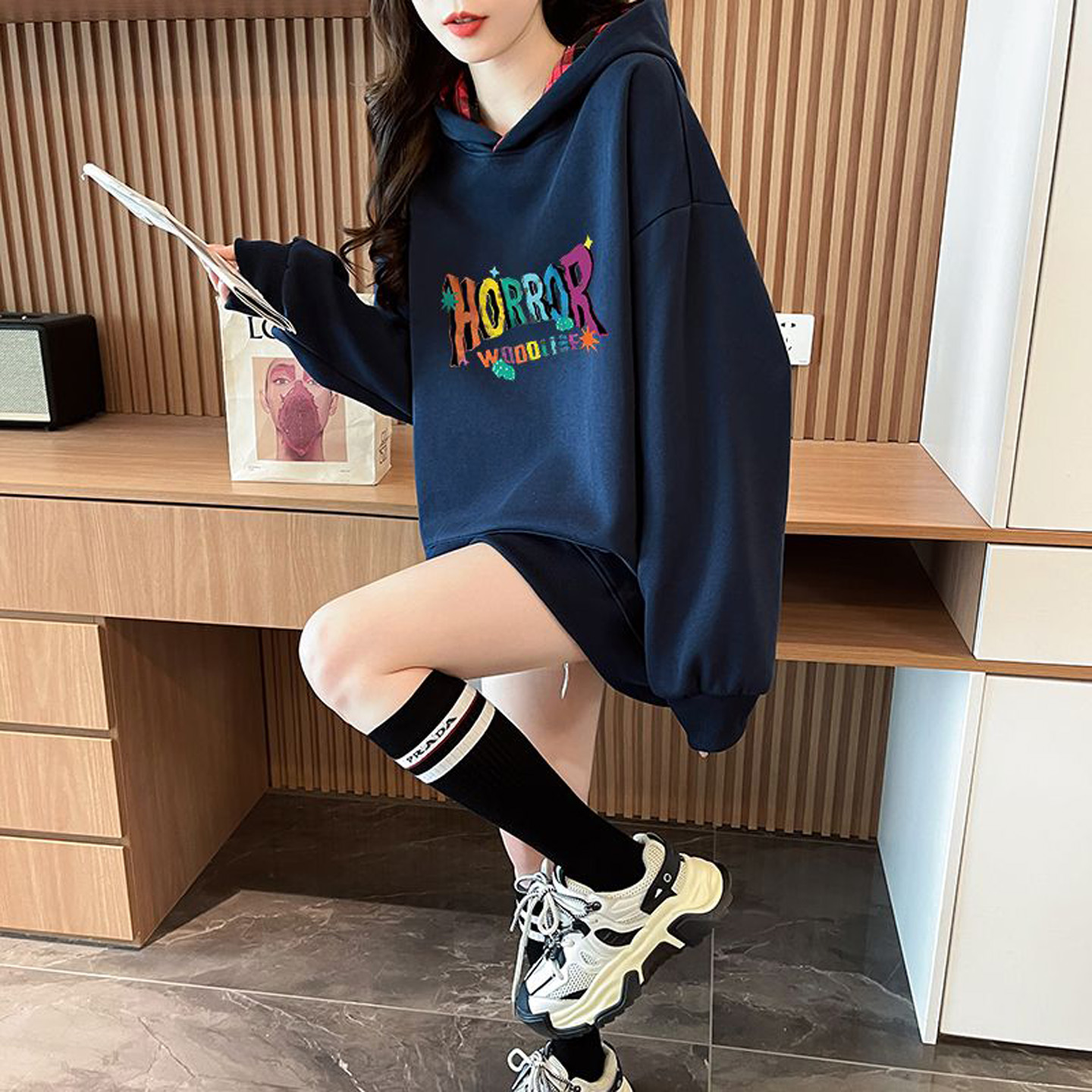 字母印花连帽卫衣女韩系慵懒chic春秋季中长款别致洋气潮流上衣服