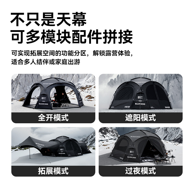 BLACKDOG黑狗黑胶穹顶天幕帐篷户外防雨野露营装备全套防晒遮阳棚