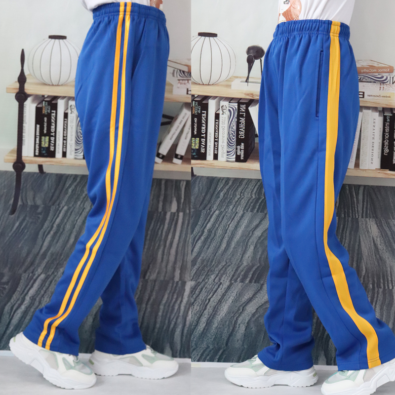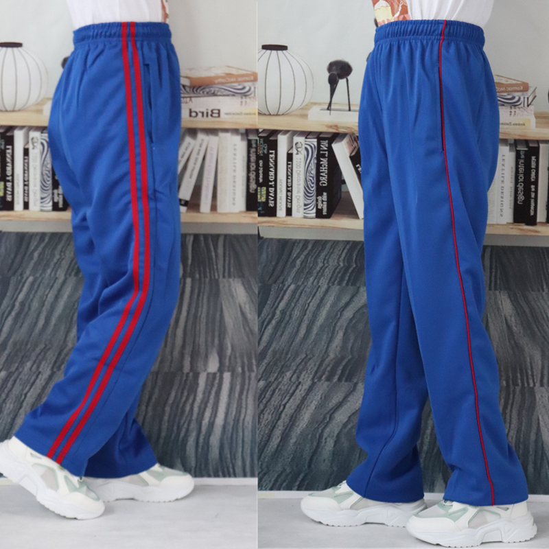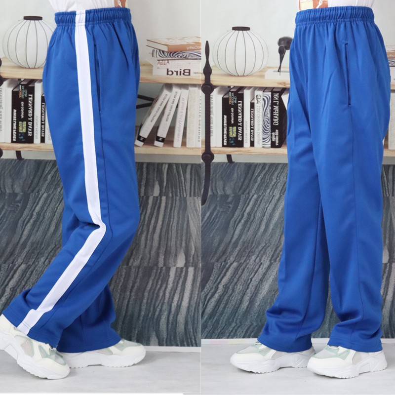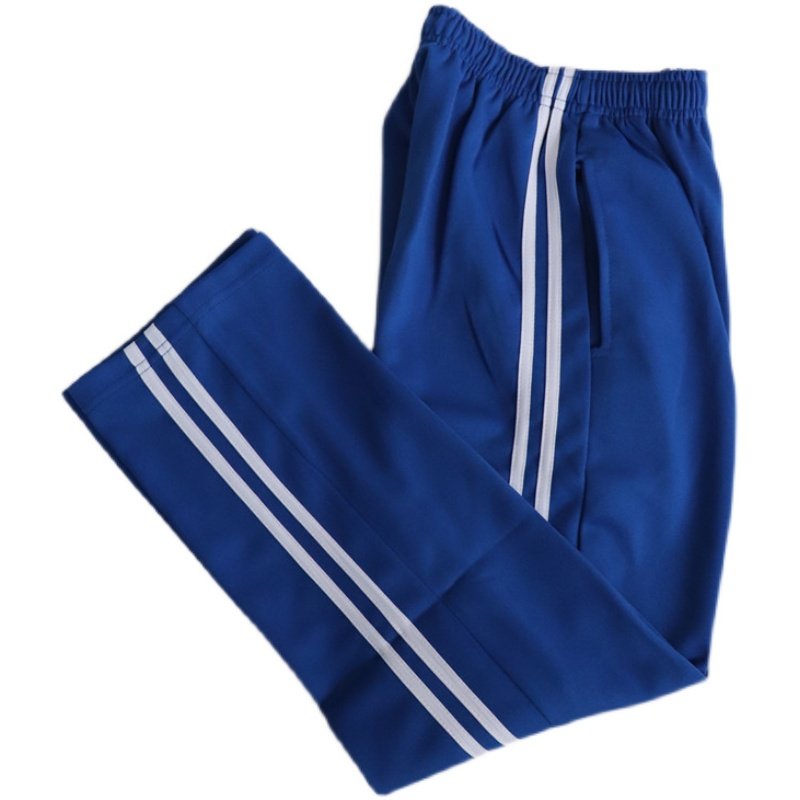 加绒宝蓝色初高中校服裤秋冬季两道白条一条白杠小学生宽松运动裤