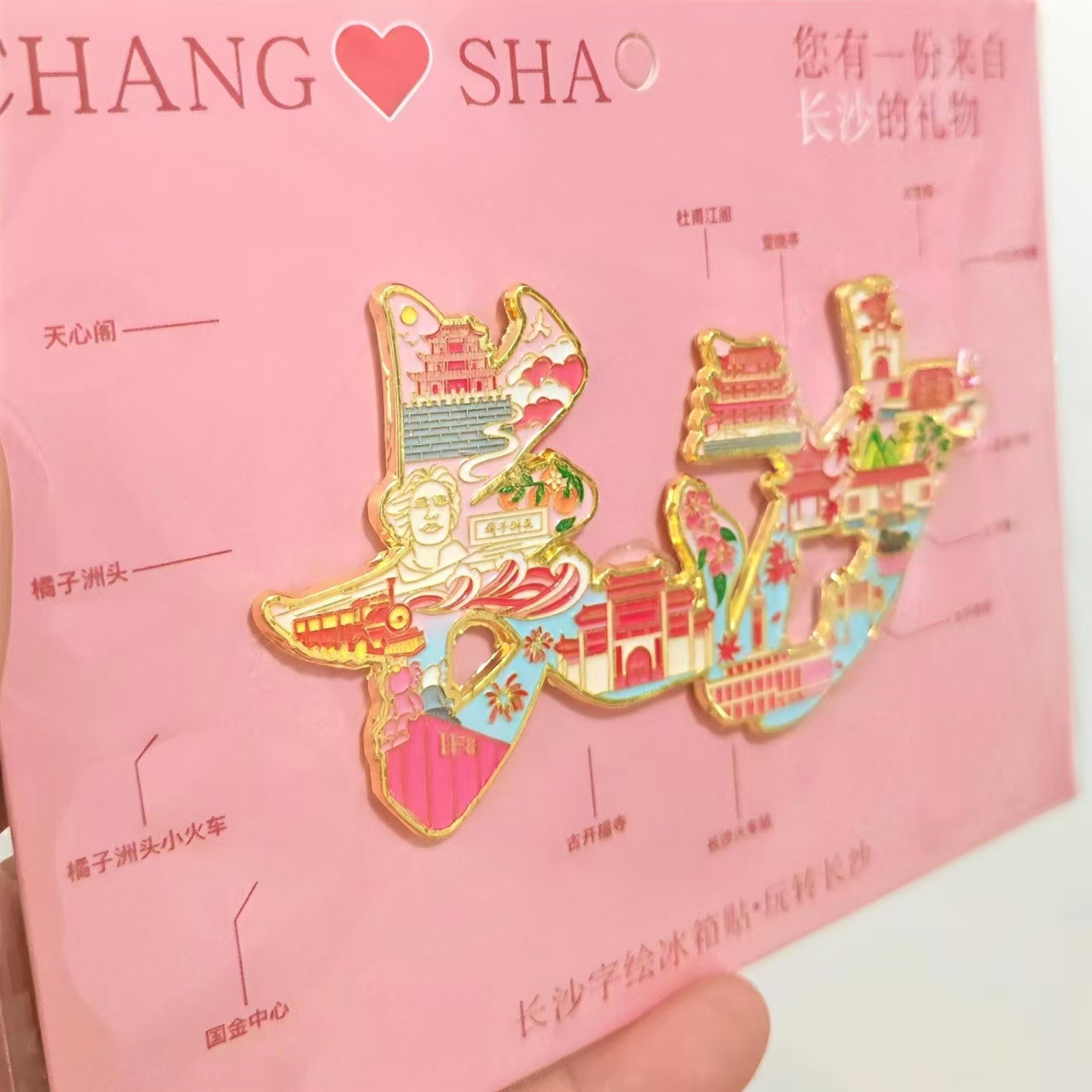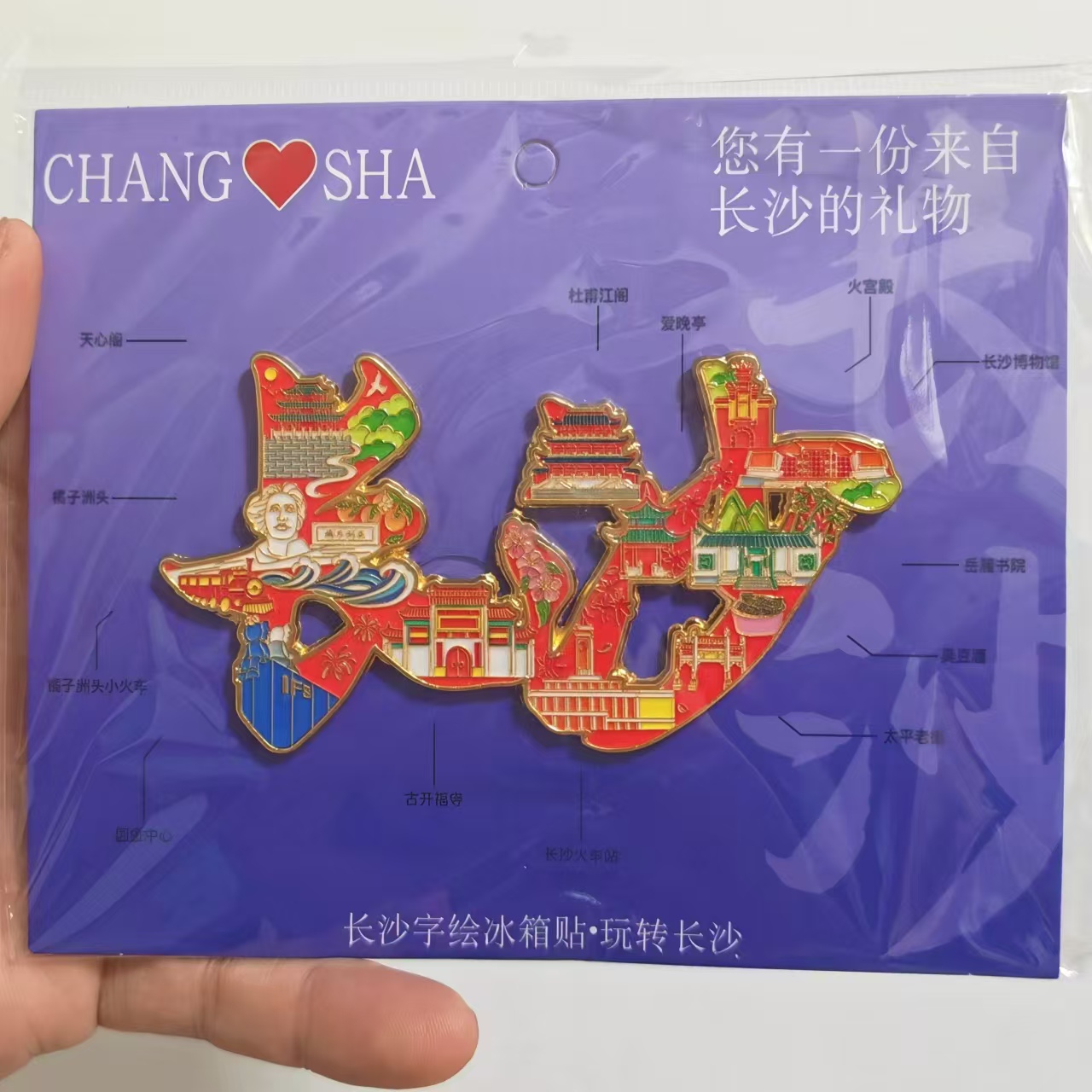 长沙冰箱贴文创字绘金属冰箱贴旅游景点同款文创纪念品伴手礼磁吸