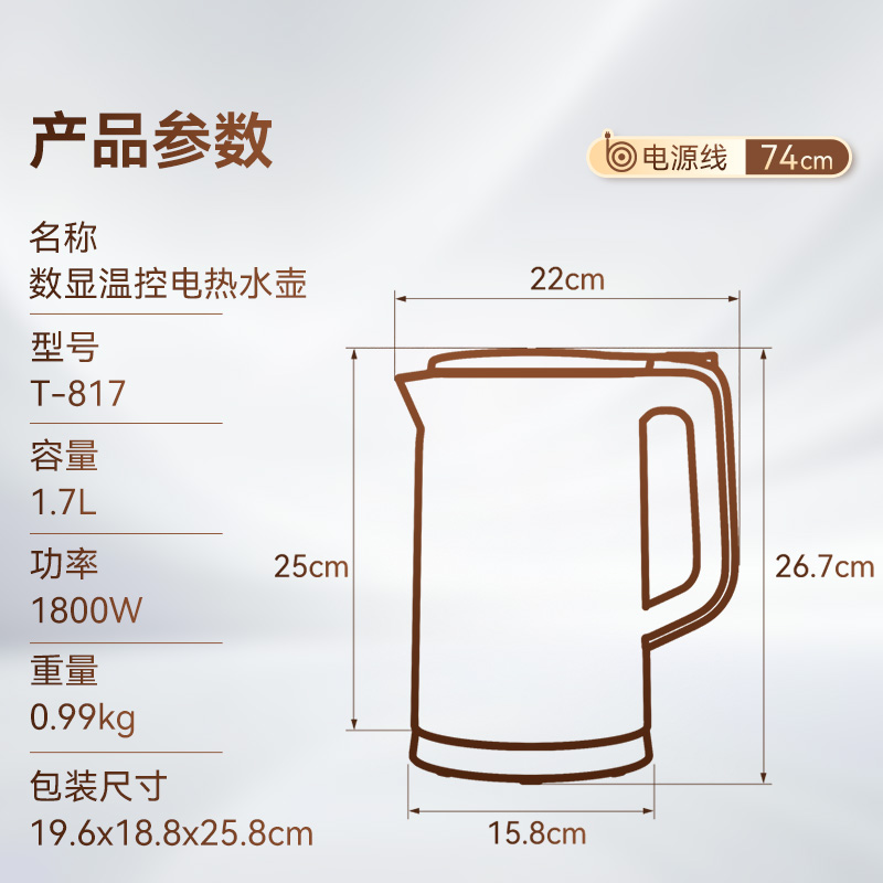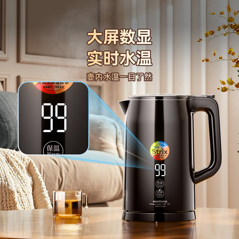 金灶T-817双层防烫烧水壶家用自动断电电水壶保温一体温显煮水壶