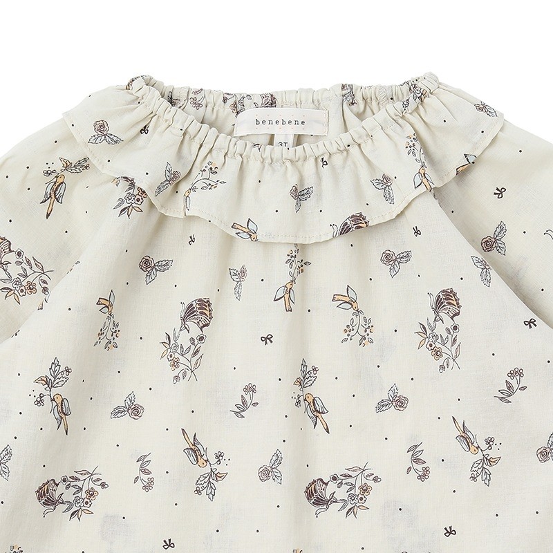 benebene韩国童装春季新款婴儿圆领印花雪纺衫女童可爱上衣