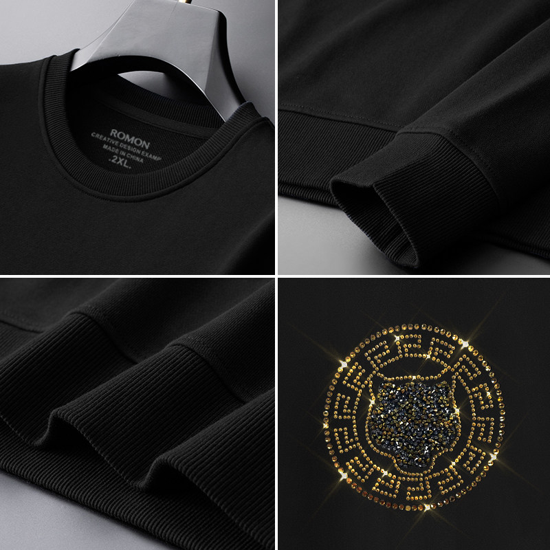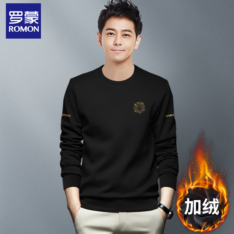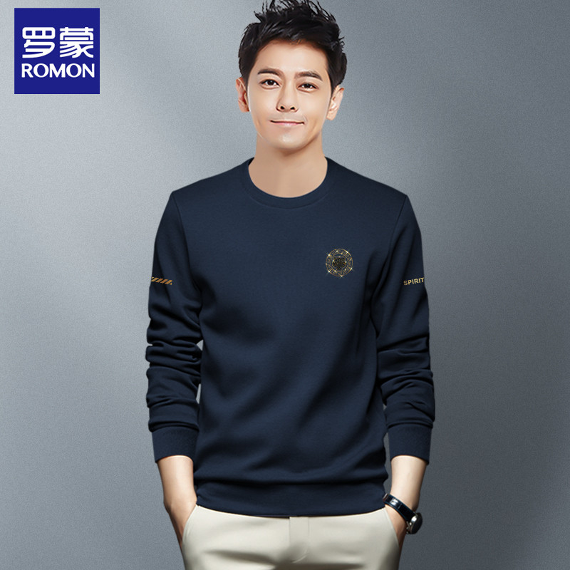 罗蒙男装RM3506春秋冬季轻奢圆领卫衣运动休闲时尚百搭印花上衣男