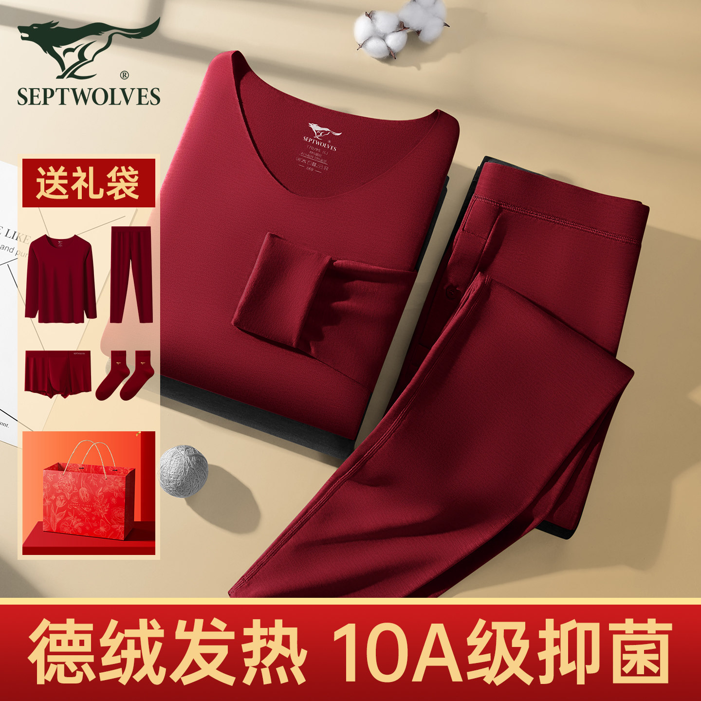 七匹狼本命年男士保暖内衣德绒马年礼物衣服红色结婚秋衣秋裤套装